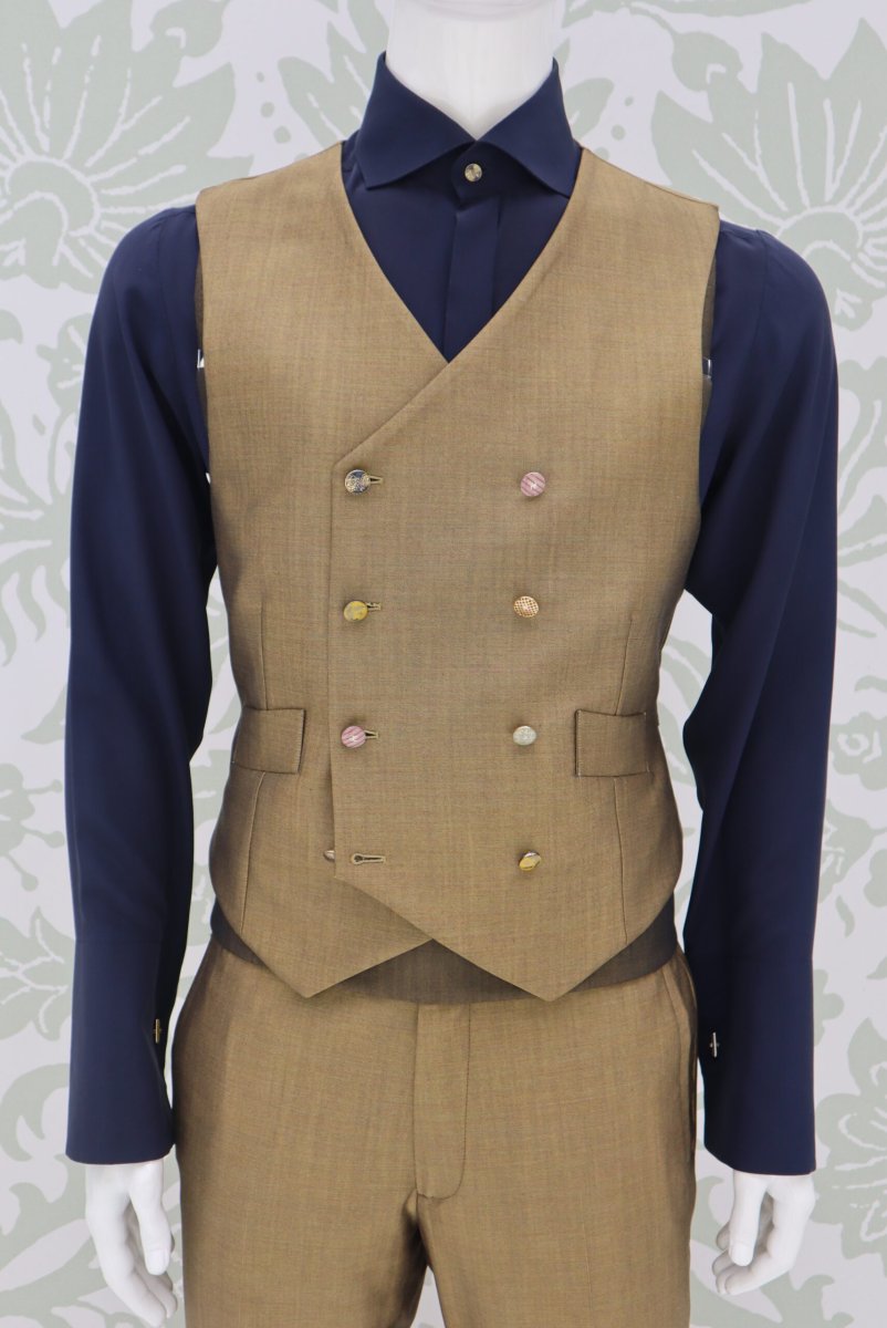 Panciotto gilet da sposo e cerimonia uomo color marrone nocciola chiaro abito Margaret Atwood