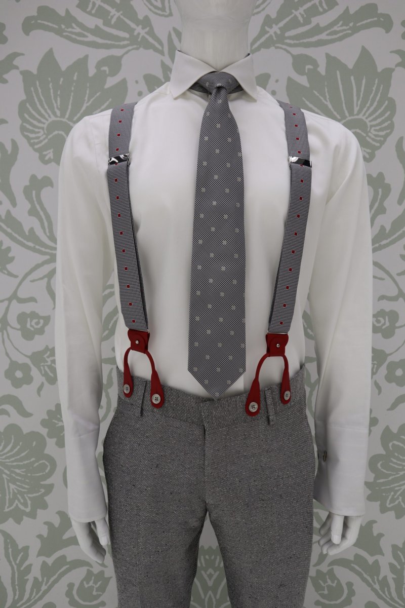 Bretelle da uomo e da sposo color grigio pois rosso Susan Sontag