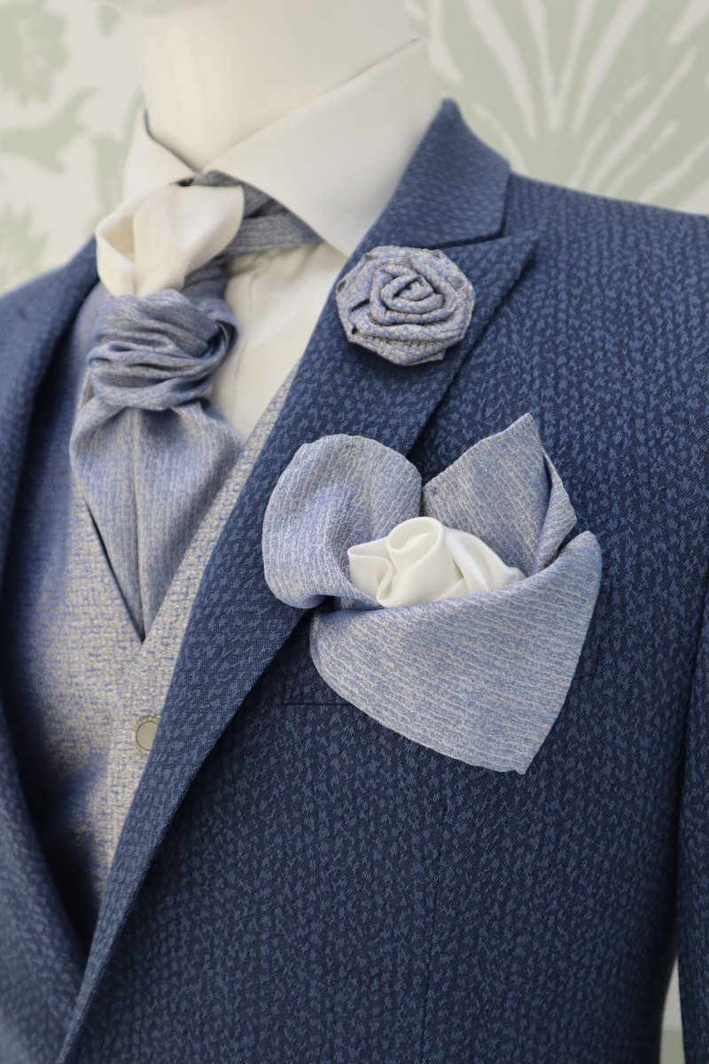 Fazzoletto da sposo e da cerimonia uomo color blu polvere e bianco avorio Victor Hugo