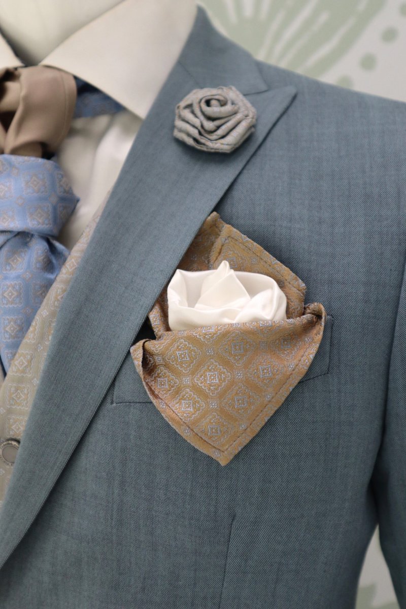 Fazzoletto da sposo e da cerimonia uomo color bianco perla Sabbia azzurro
