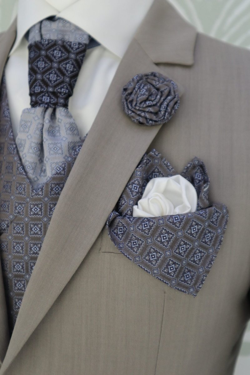 Fazzoletto da sposo e da cerimonia uomo color grigio e bianco avorio abito Susan Sontag