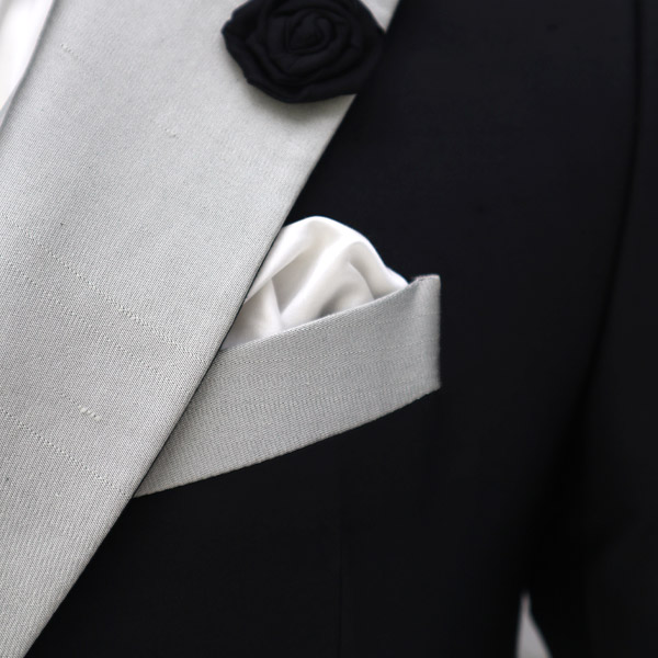 Fazzoletto da sposo e da cerimonia uomo color raso bianco e grigio perla broccato abito Dante Alighieri