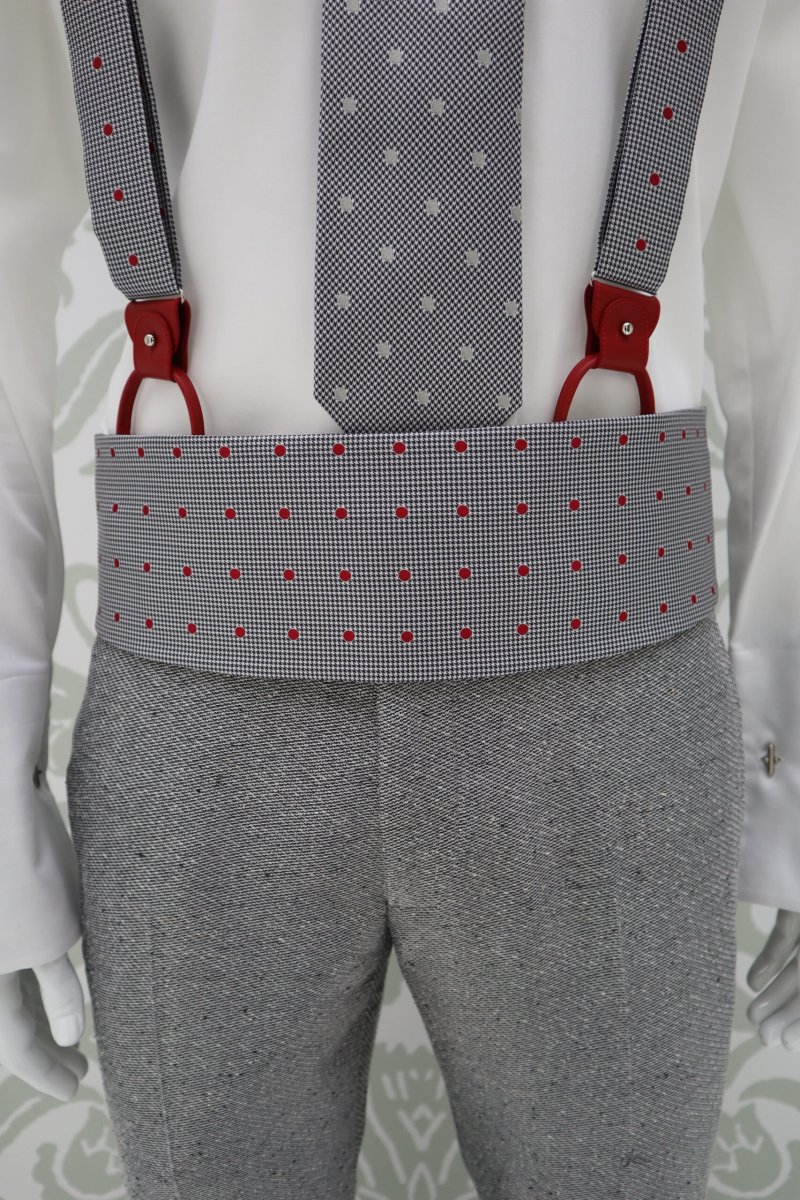 Cintavita da sposo e da cerimonia uomo color grigio perla pois rosso abito Susan Sontag