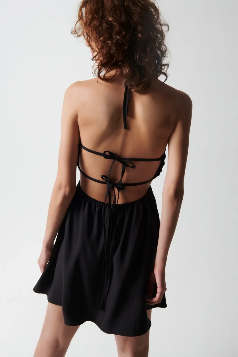 Abito corto in tessuto fluido, con lacci sulla schiena