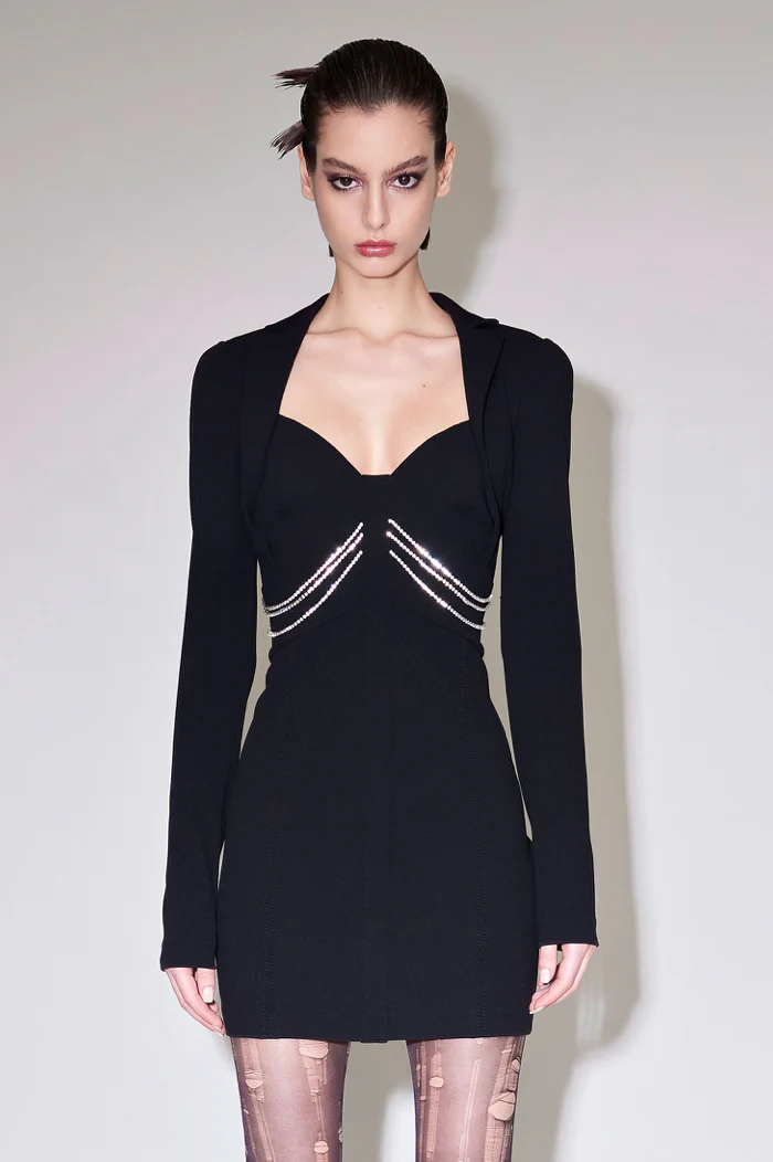 Abito aderente con scollo a cuore e applicazione strass sul corpetto