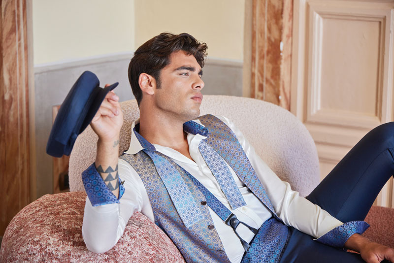 Entra ora nel cuore della creazione e indossa un panciotto uomo glamour in seta 100%.