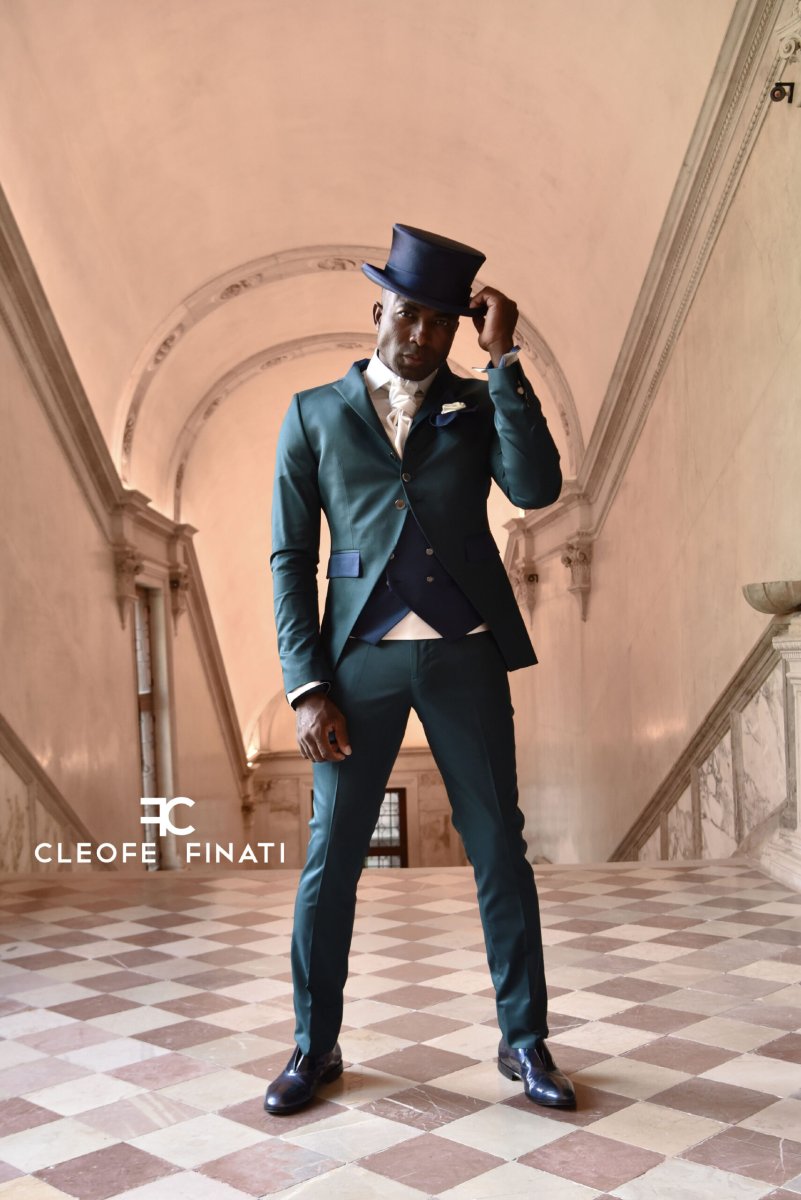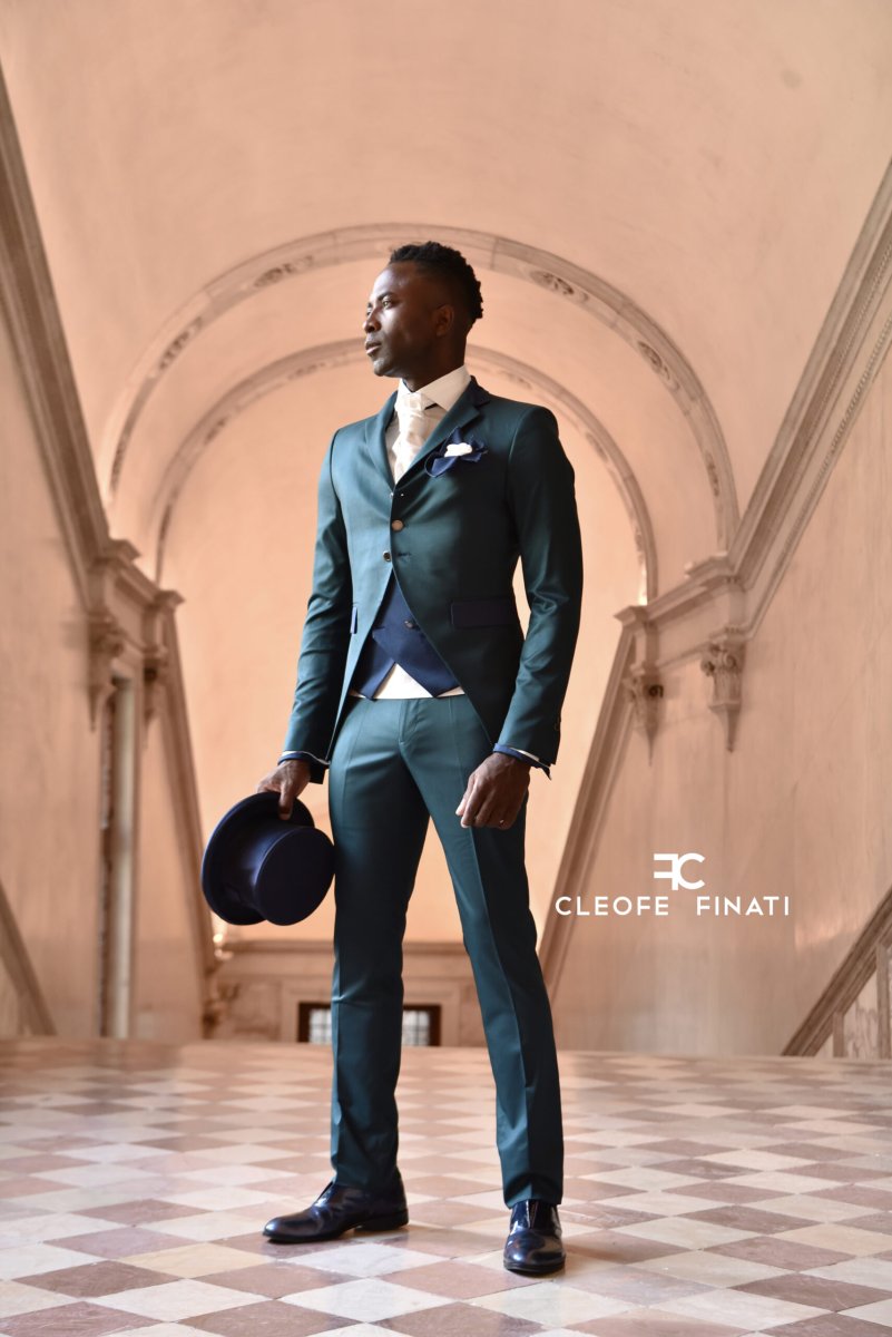 Uno degli abiti da sposo uomo più sofisticati, perfettamente calibrato nelle linee e nei materiali, un vero capolavoro raffinato ed elegante a firma Cleofe Finati.