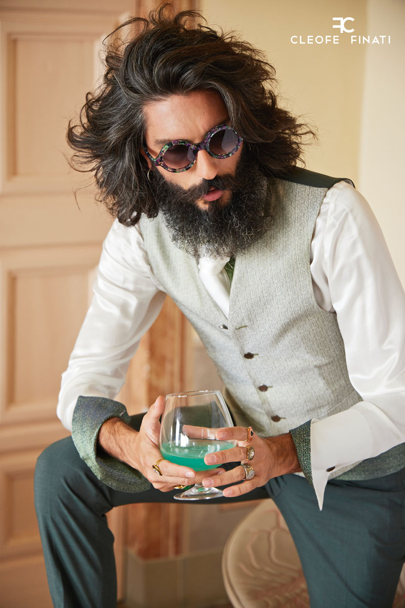 Una creazione dunque dedicata ad un uomo di classe che ama il bel vestire, scegliendo dei begli abiti da uomo ma nel contempo anche un’immagine glamour, che vuole essere elegante ma anche esaltato nella propria bellezza, in sintesi un’opera che risponde all’uomo di oggi.