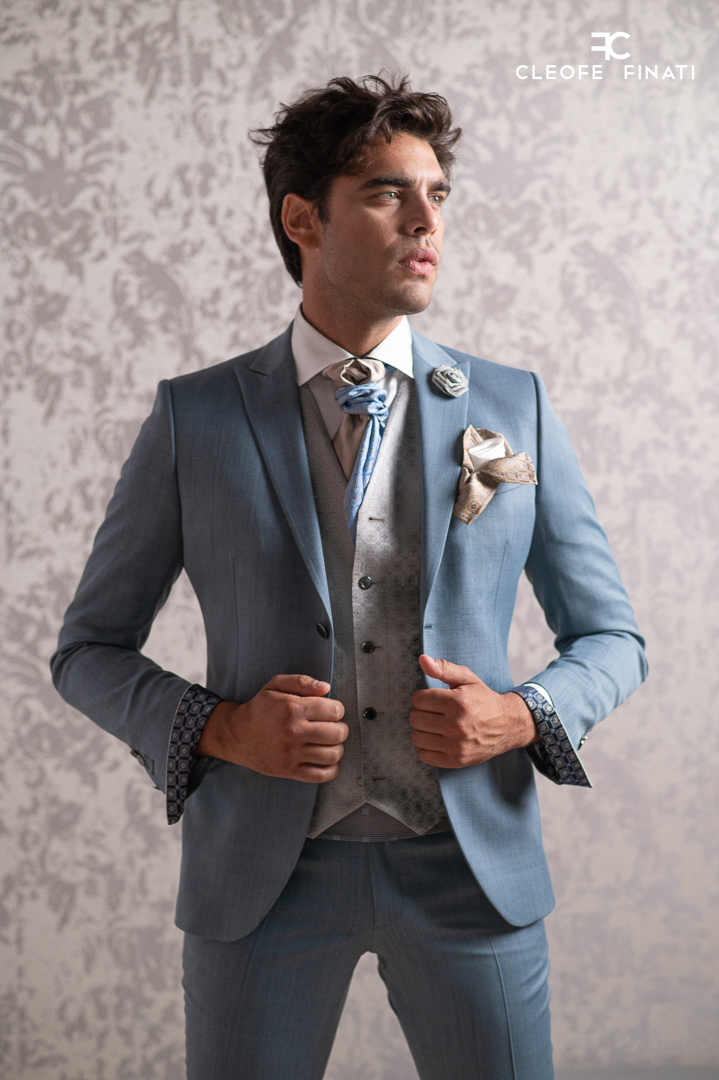 Un abito uomo blu verde azzurro per uno sposo e non sposo “fashion”.