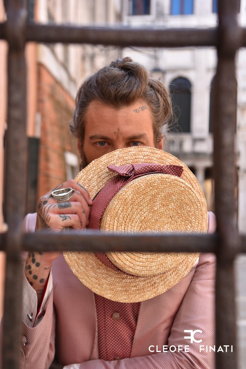 Un abito da sposo maschile raffinato ed elegante, ma eccentrico e innovativo. Un abito da sposo che unisce antica tradizione sartoriale e creatività, un’opera unica e ricercata firmata Cleofe Finati 2025.