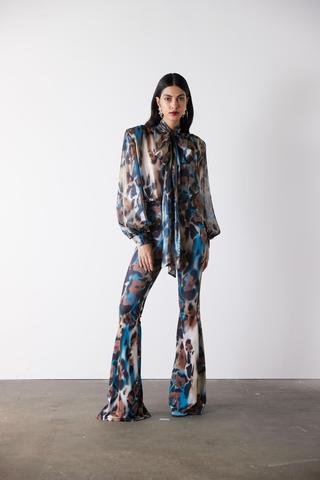 Blusa in georgette a fantasia con spalline e con fusciacca.