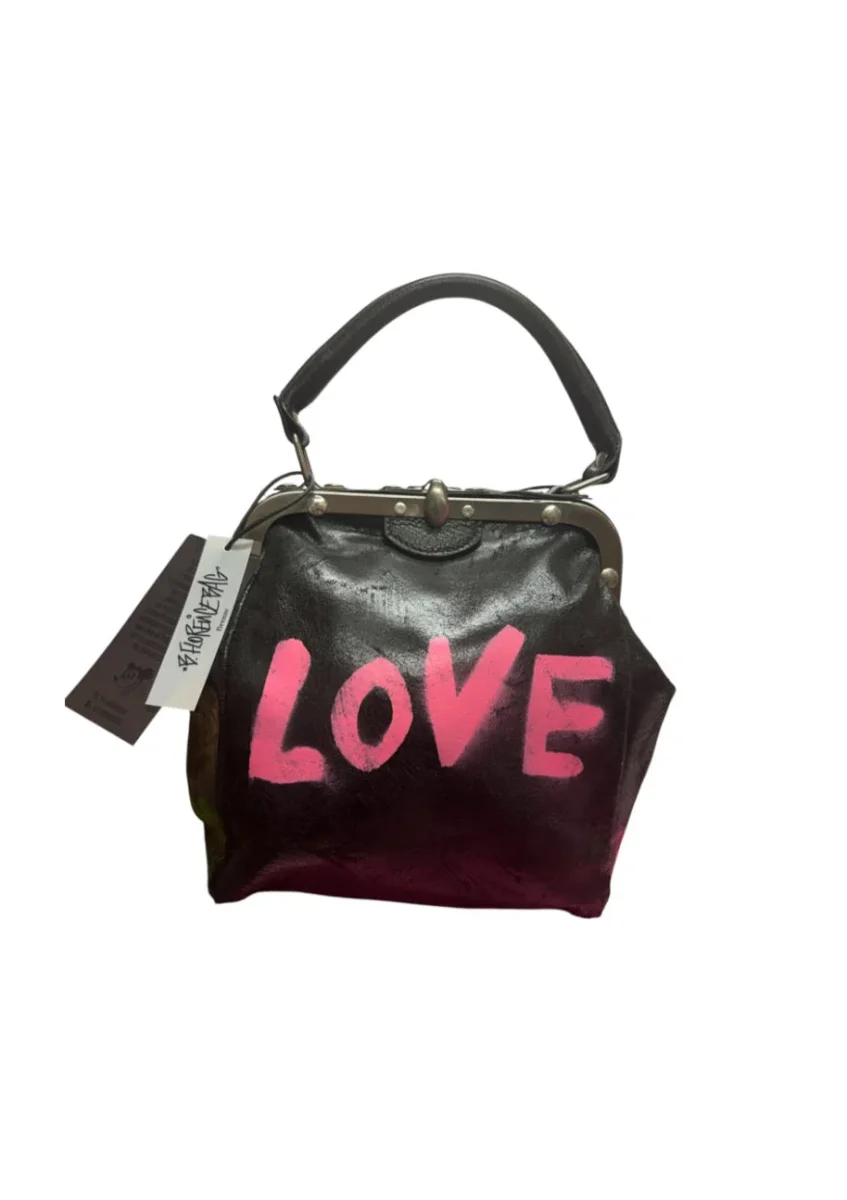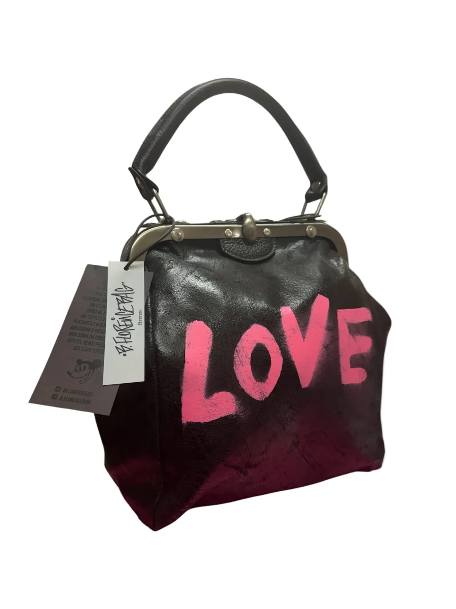 Materiale utilizzato pelle di vitello con stampa effetto usurato e scritta stile graffiti, tracolla inclusa