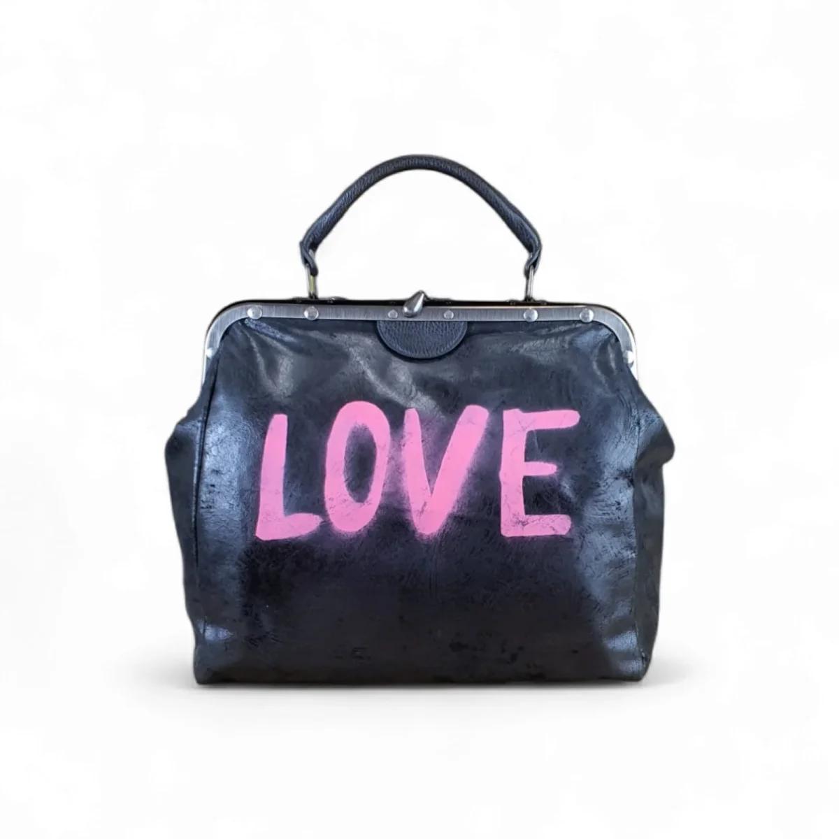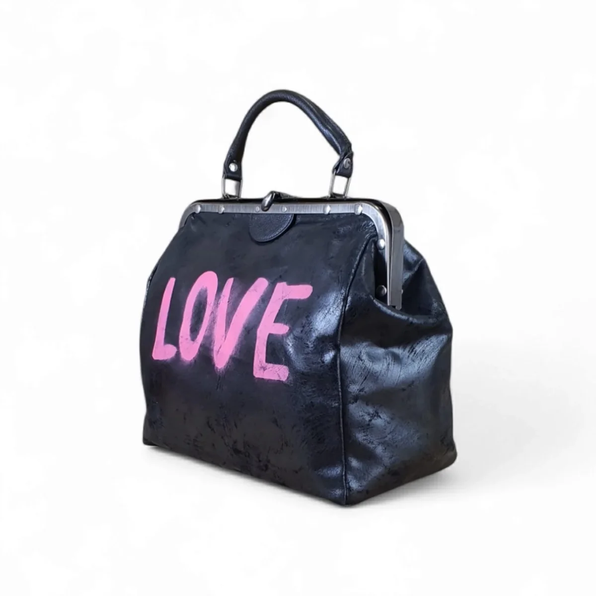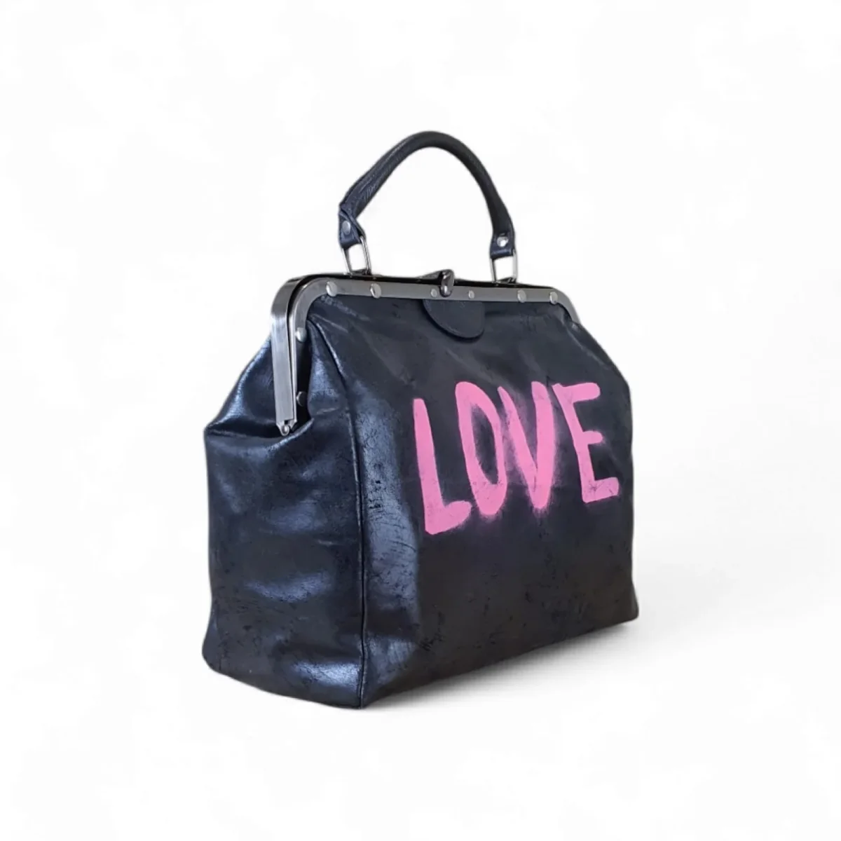 Materiale utilizzato pelle di vitello con stampa effetto usurato e scritta stile graffiti, tracolla inclusa