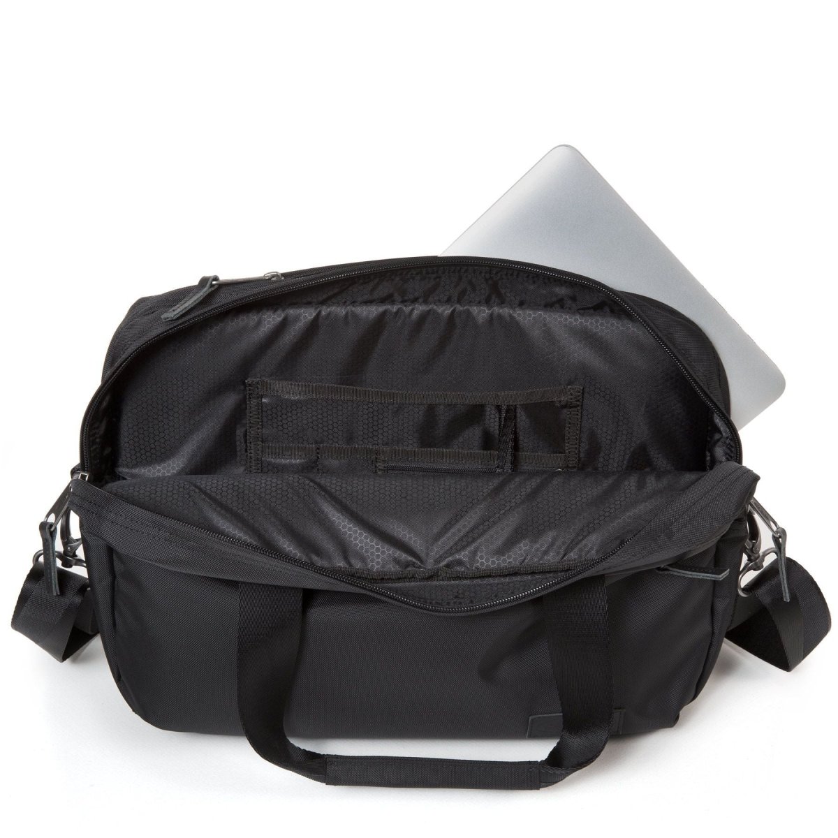 Caratterizzata da un grande scomparto principale con organizer interno. Altezza: 27,5 cm, Larghezza: 38 cm, Profondità: 10,5 cm. Realizzata in nylon balistico Black con finiture in pelle. Dotata di scomparto posteriore imbottito per laptop da 15 pollici. Impugnatura sui manici imbottita e tracolla removibile