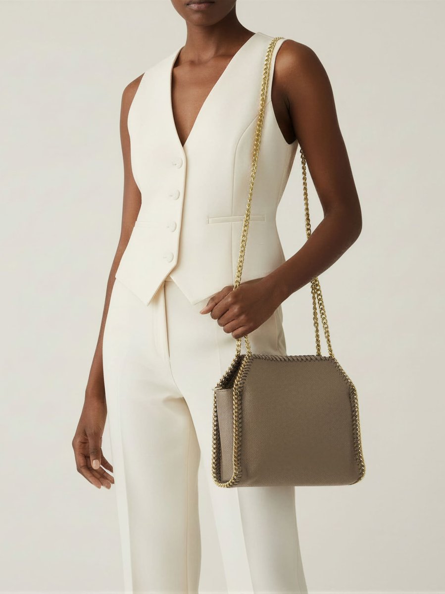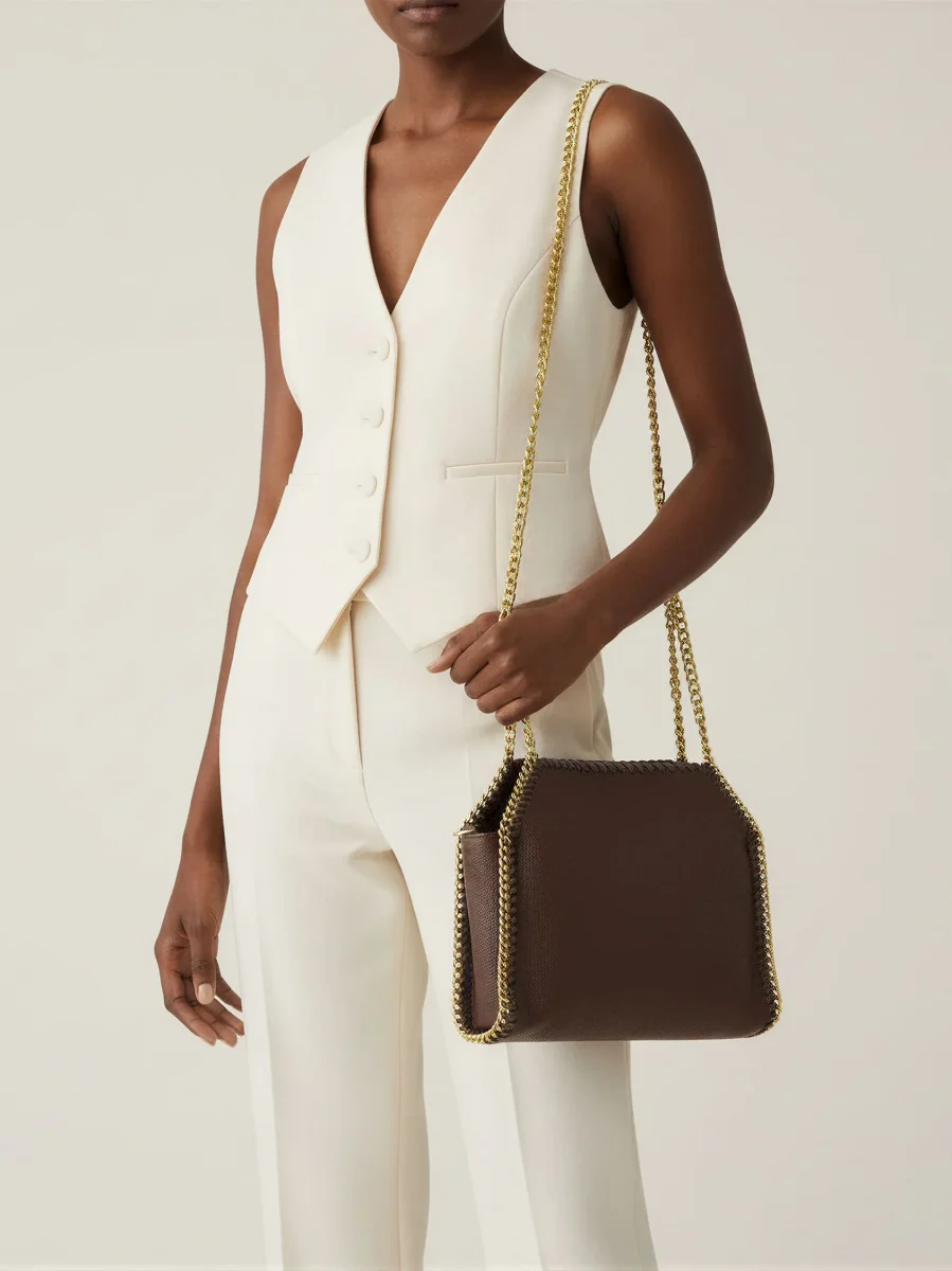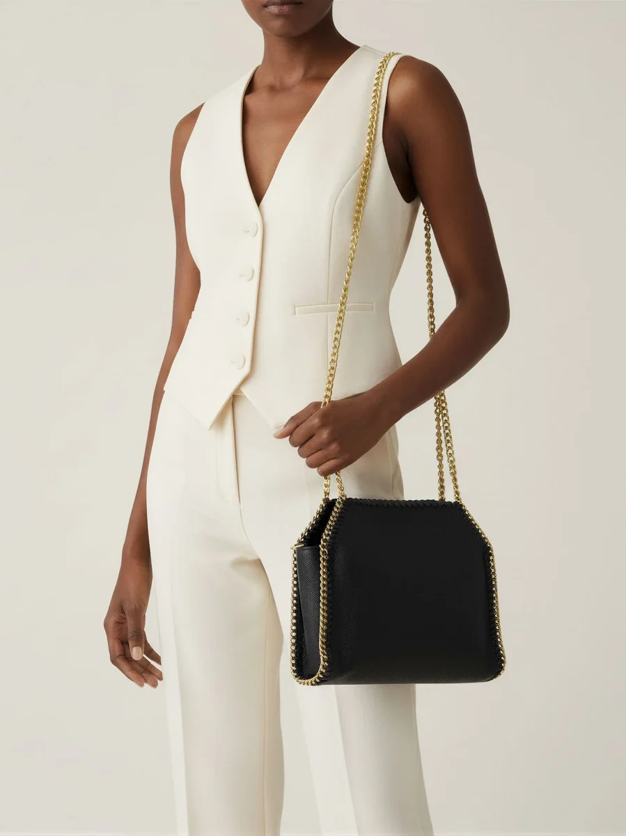 Modello: Borsa a spalla in simil-pelle bottalato con tracolla a catena color oro cucita sui bordi