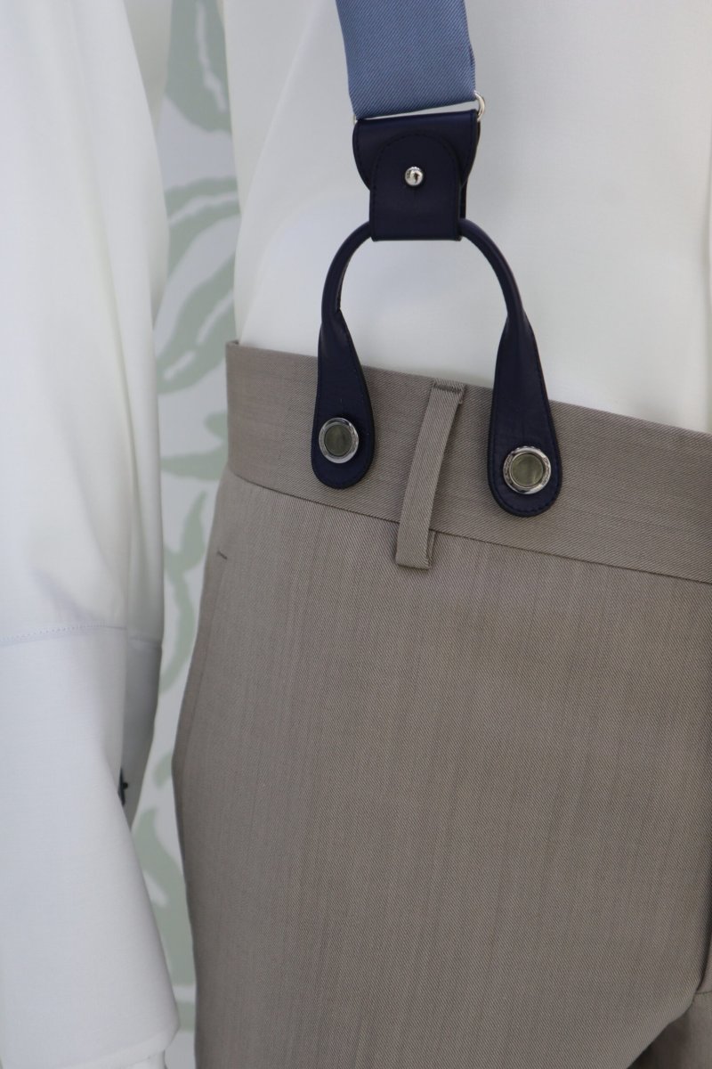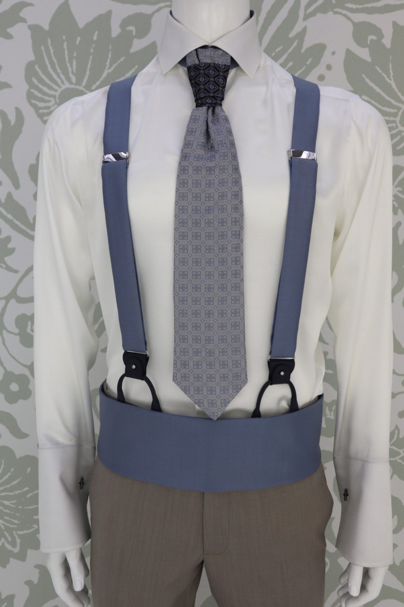 Bretelle da cerimonia uomo Cleofe Finati color azzurro polvere pensate per completare l’abito da sposo con eleganza, carattere e cura sartoriale. Un accessorio distintivo, ideale per matrimoni ed eventi formali, progettato per garantire comfort, stabilità e uno stile raffinato.
