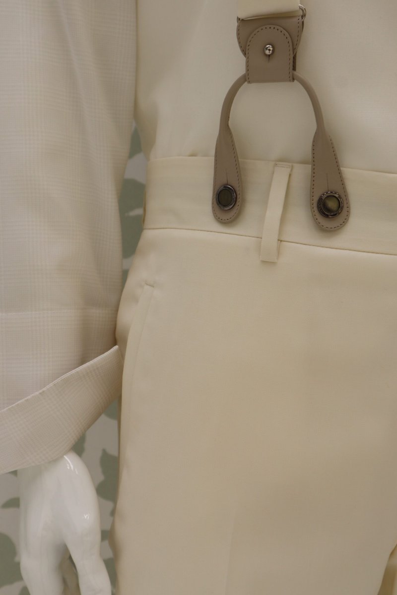 Bretelle da cerimonia uomo Cleofe Finati color bianco perlato pensate per completare l’abito da sposo con eleganza, carattere e cura sartoriale. Un accessorio distintivo, ideale per matrimoni ed eventi formali, progettato per garantire comfort, stabilità e uno stile raffinato che si abbina bene anche con l’abito della sposa.