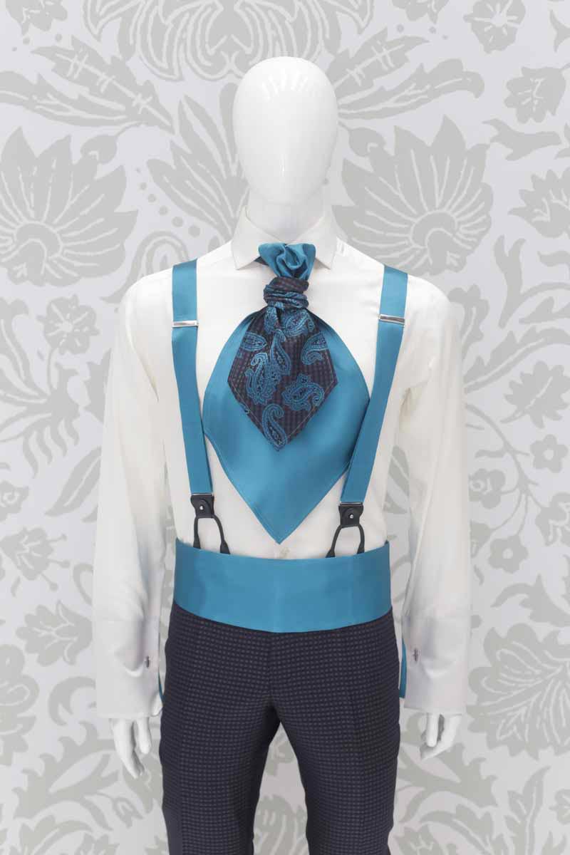 Un must dell’abbigliamento uomo è la bretella in seta che personalizza l’abito da sposo. Un accessorio che diviene un tocco di eleganza che non può mancare nell’abbigliamento dell’uomo di stile contemporaneo. La bretella negli ultimi anni è divenuta un elemento che può essere indossato sia su un abito estremamente elegante, sia su un look rilassato.