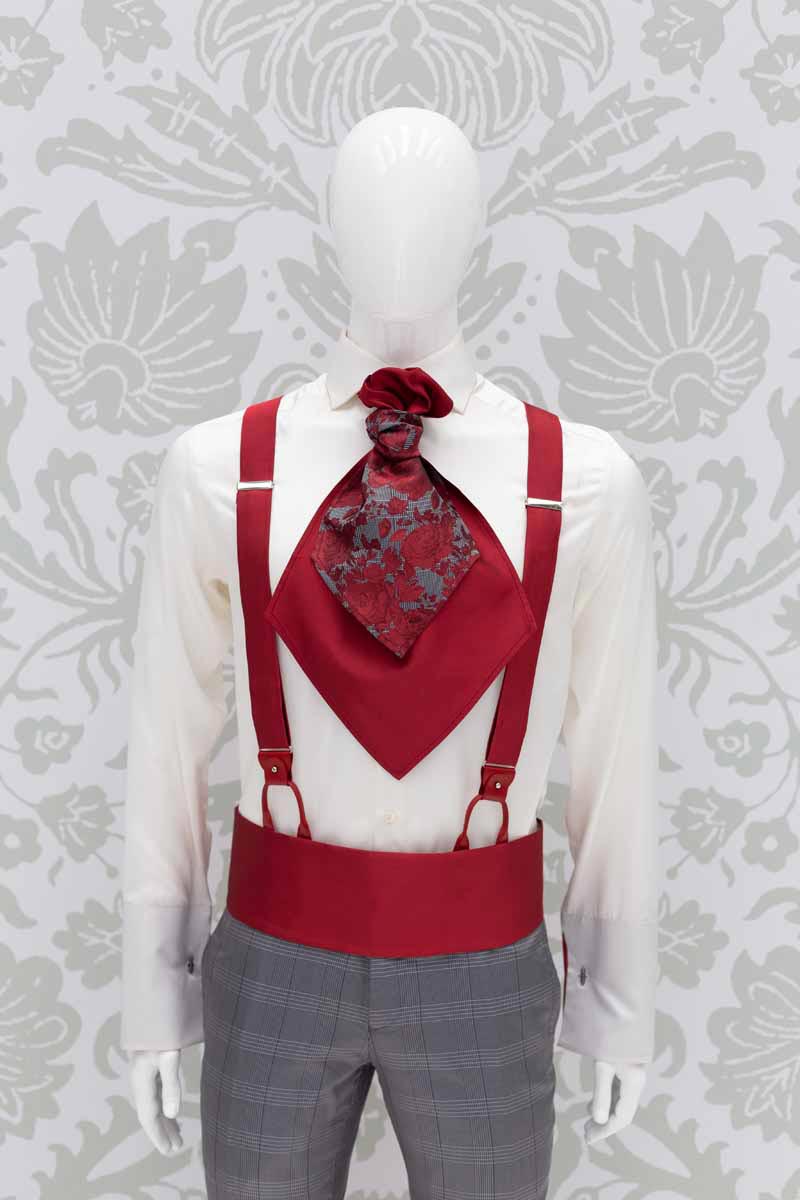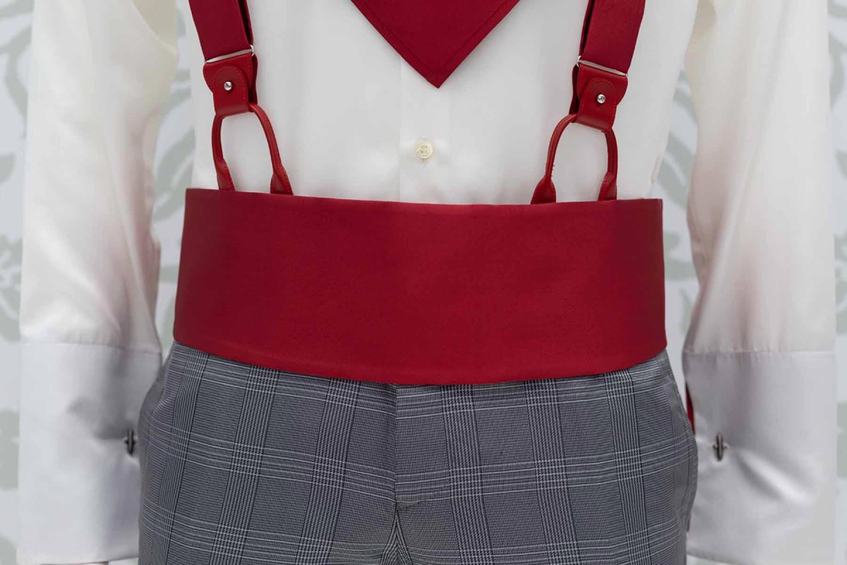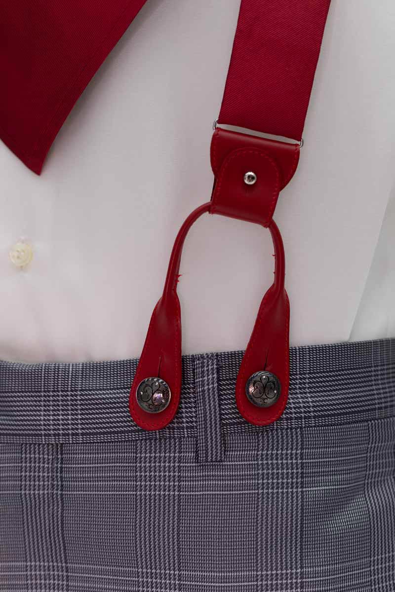 Bretelle in seta rosso intenso per abito da uomo glamour con finali in pelle e clip made in Italy 100%, regolabili nella lunghezza. La bretella in seta è sinonimo di grande eleganza.