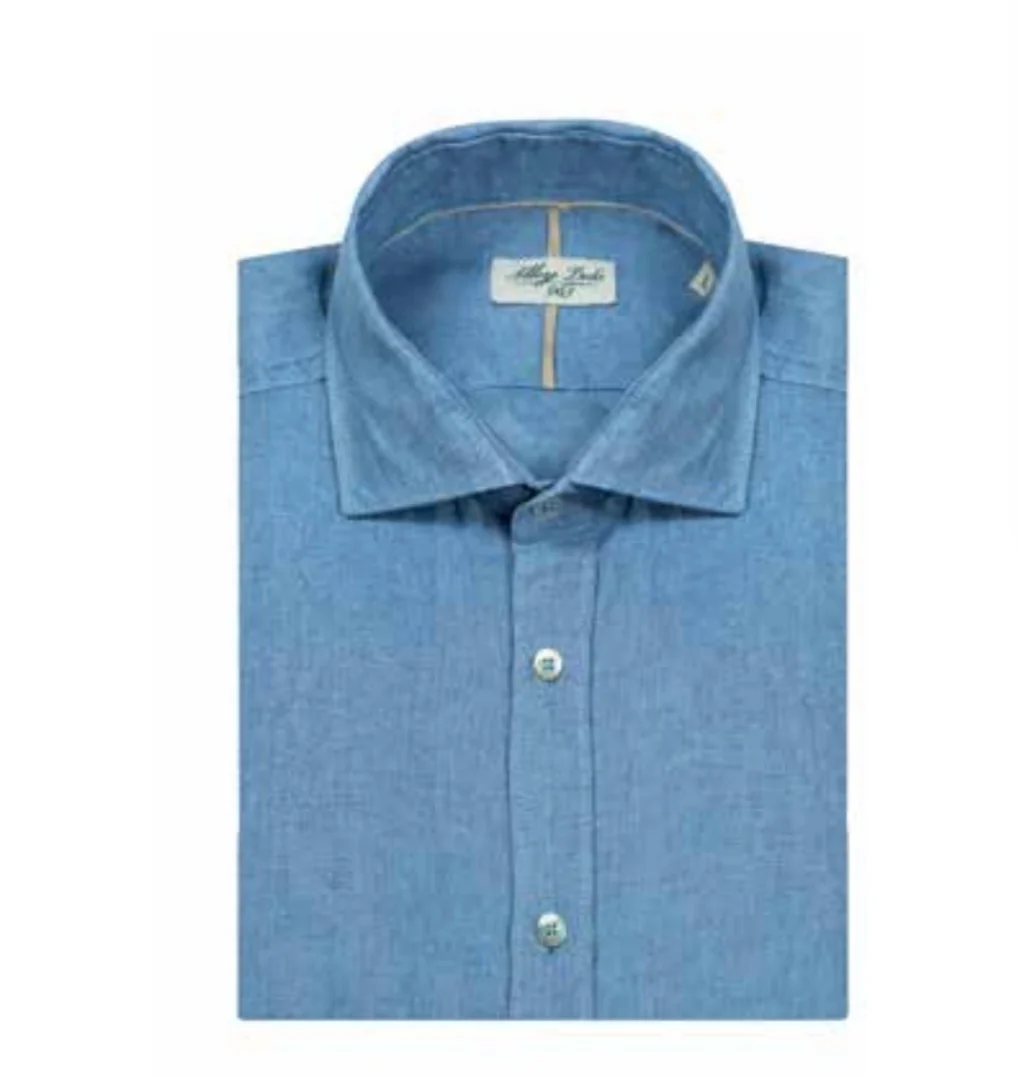 Camicia manica lunga con collo francese, realizzata in 100% lino, fresca e traspirante.