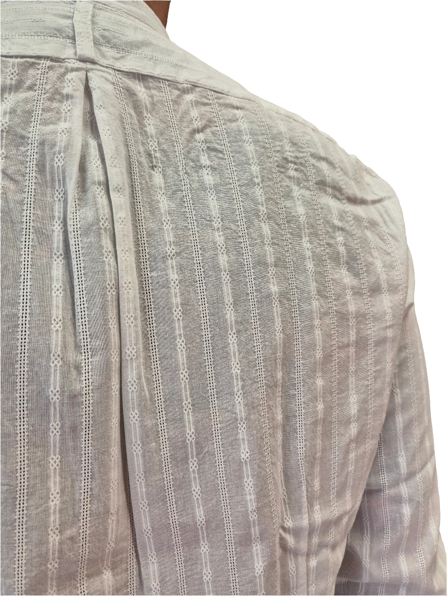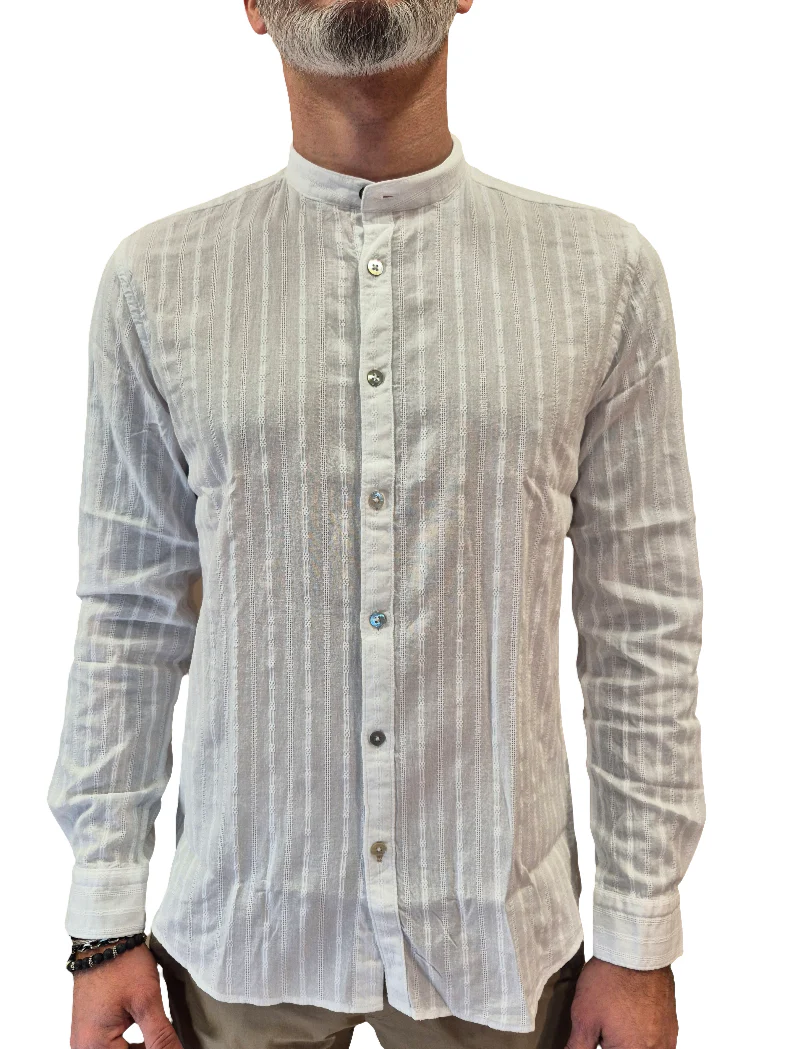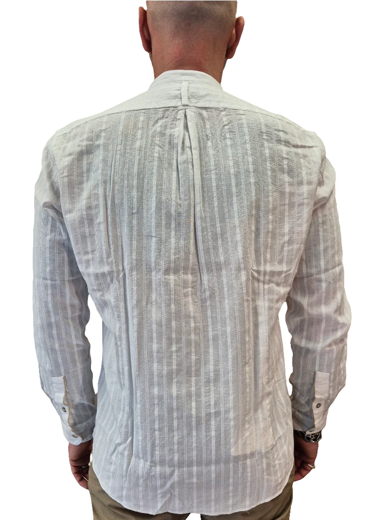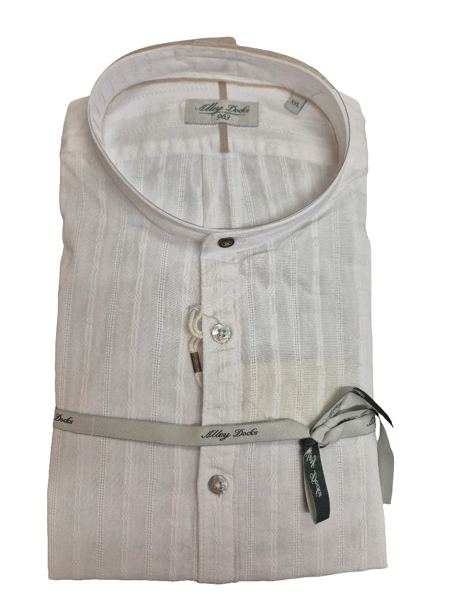 Camicia collo alla coreana, bianca, fantasia jacquard