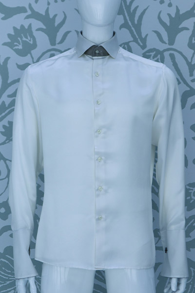 - Corpo camicia in raso di seta (51%) e cotone (49%) bianco latte