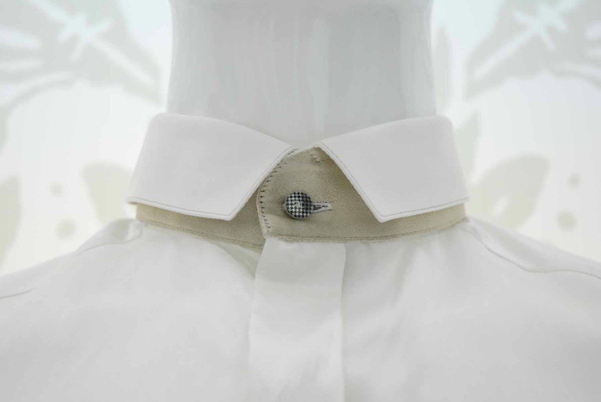 La camicia per la creatività a firma Cleofe Finati è un elemento importantissimo nell’insieme dell’abito ma anche come elemento da poter indossare da solo. La luminosità garbata della seta e la traspirabilità del cotone insieme alla bellezza del broccato che la personalizza, crea una vera opera d’arte.