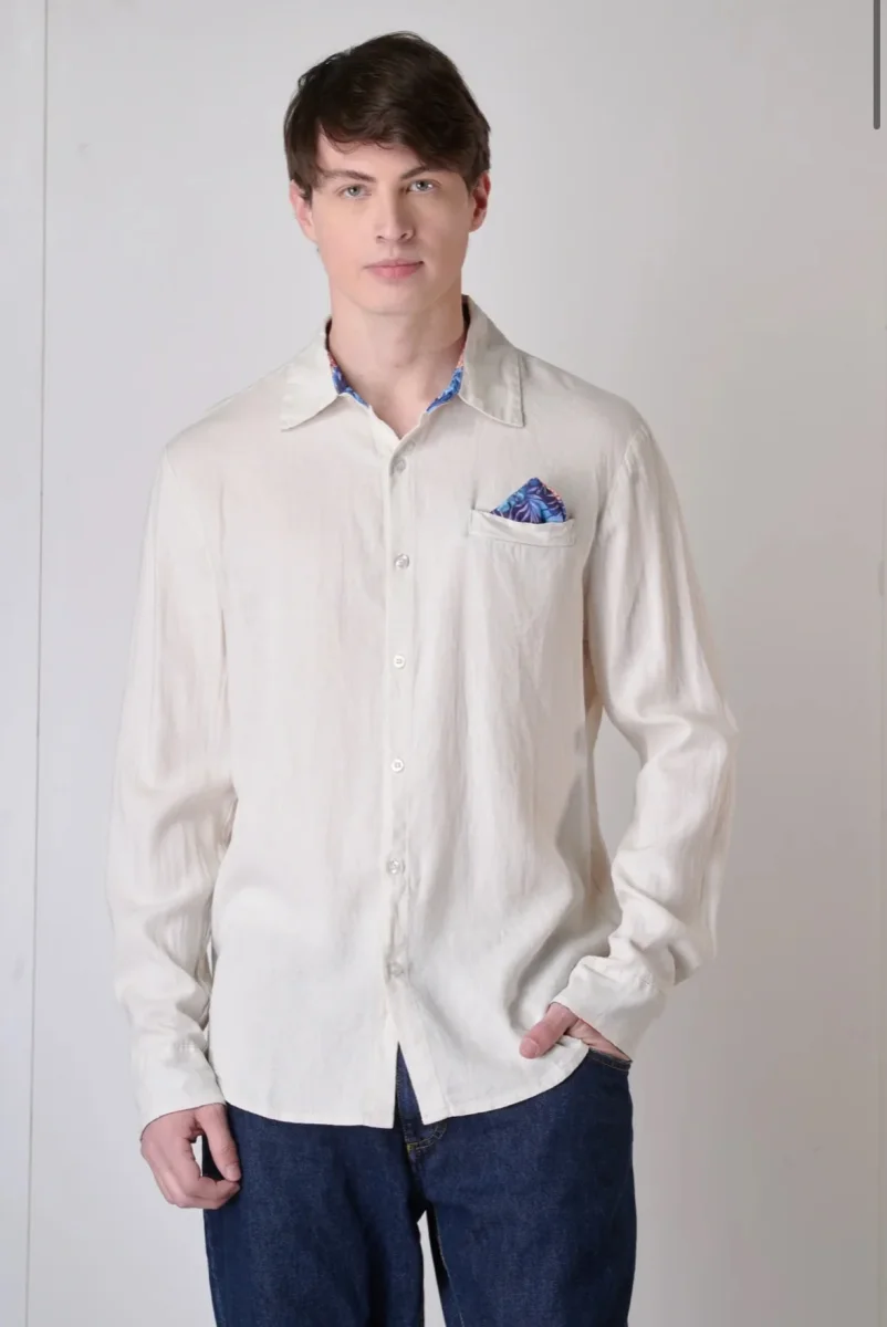 La camicia in lino con collo alla francese è un grande classico che non può mancare nel guardaroba estivo. Linee morbide e comfort la rendono un capo comodo e versatile, perfetto da indossare sia per un look da spiaggia, che per una serata elegante e formale.