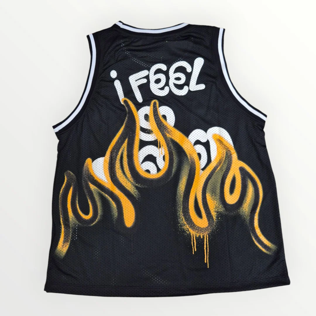 Stampa con grafica fiamme bicolor nel retro
