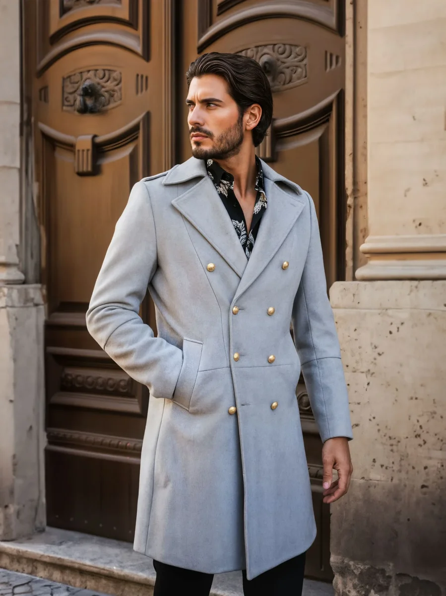 Modello: Cappotto military-chic dal taglio deciso, ispirato alle divise classiche. Versatile e strutturato, si indossa come soprabito o come elemento centrale dell’outfit.. La chiusura a doppio petto con bottoni in metallo dorato dona carattere ed eleganza. La lunghezza media, che sfiora il ginocchio, slancia la figura con equilibrio e stile senza tempo.