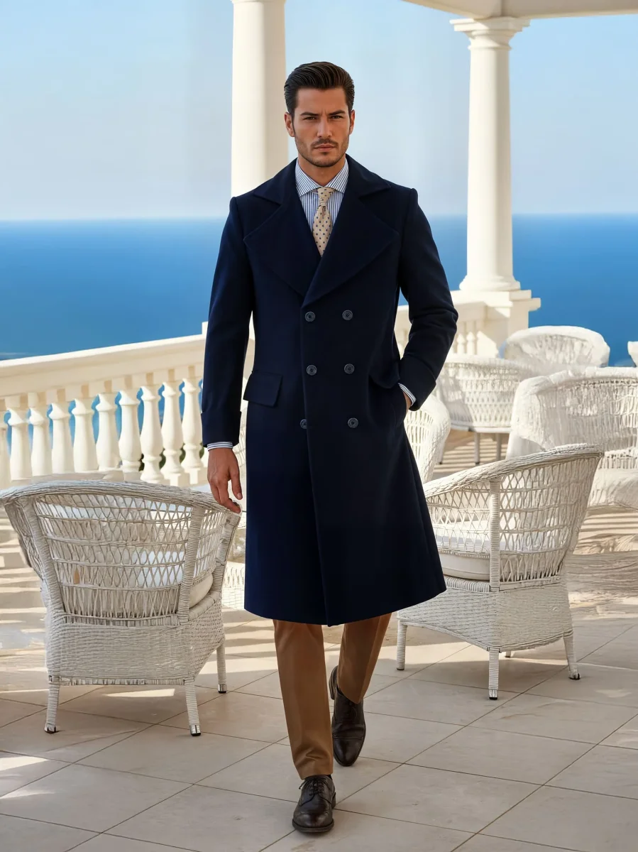 Modello: Cappotto a taglio Chesterfield, nato per incarnare l’eleganza e la raffinatezza. Con il suo taglio classico e senza tempo, questo cappotto viene spesso indossato come soprabito versatile. Il rever ampio trasmette autorevolezza e stile, mentre la lunghezza oltre il ginocchio, i 6 bottoni e la martingala sul retro aggiungono un tocco di eleganza formale. La vestibilità avvolge la figura in vita per accentuare la larghezza delle spalle, conferendo un aspetto possente e raffinato. Scelto dai grandi affaristi di New York, da cui prende il nome “Business,” è un capo imprescindibile per chi vuole distinguersi.