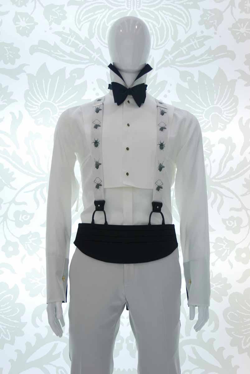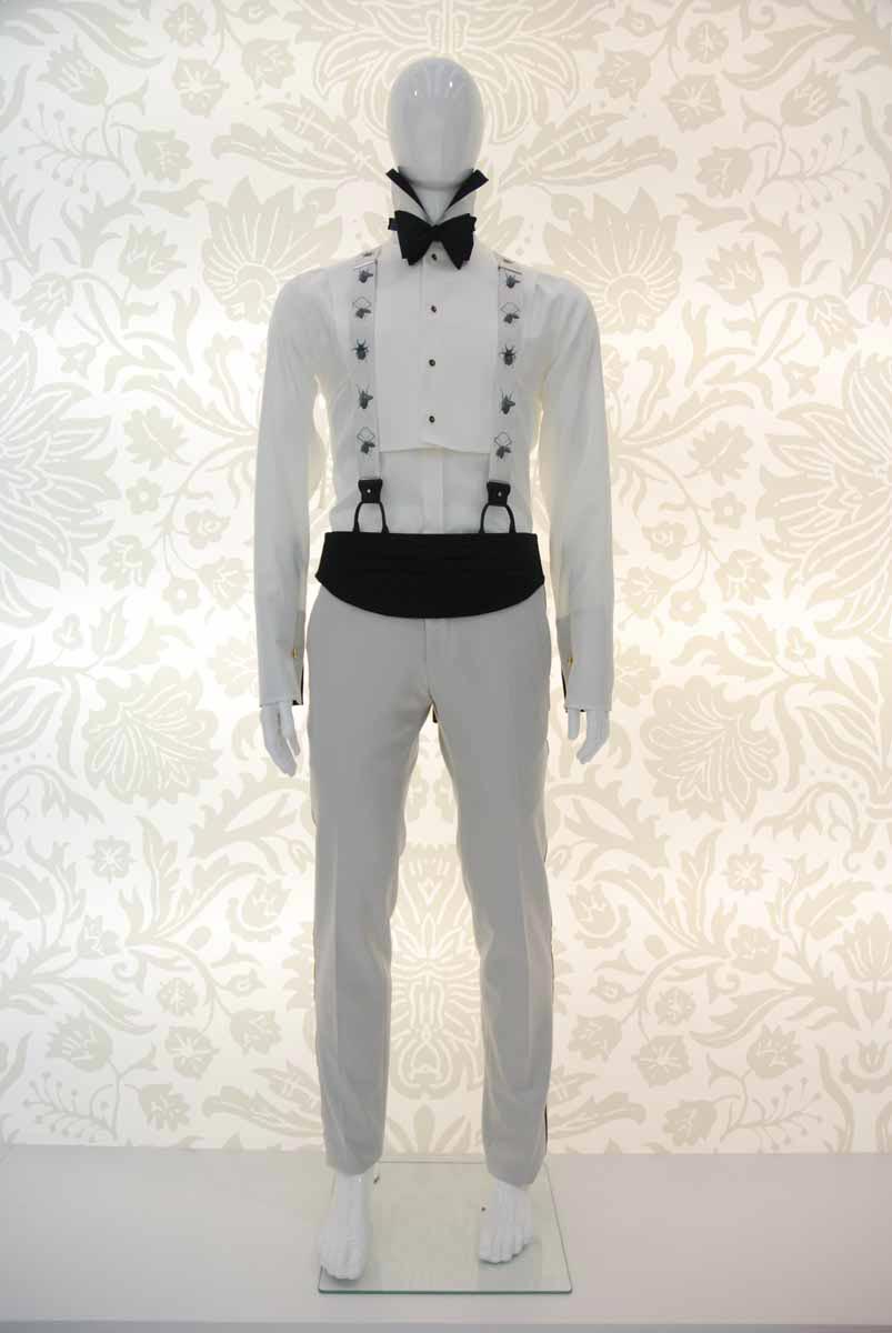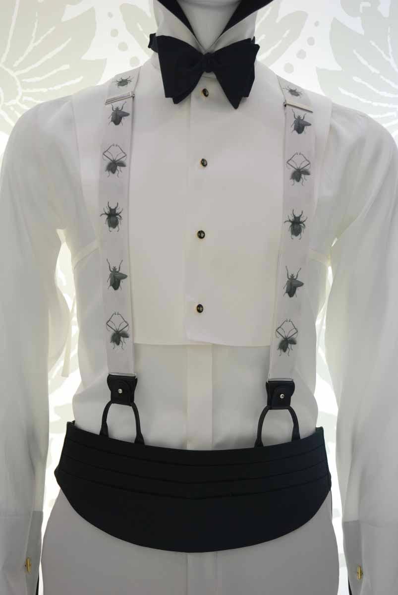 Per modellare ancora di più il tuo corpo, contenere perfettamente la camicia e giocare con i colori del panciotto, una cintura per smoking fasciante in uno stupendo doppio apribile nero in seta (92%) con una percentuale elastica (ea8%), molto confortevole, per abito da uomo glamour made in Italy 100%.