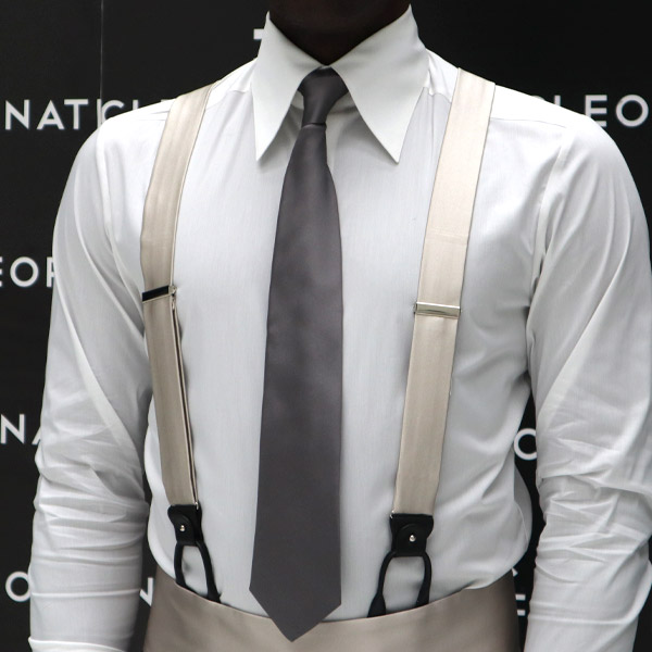 Cravatta in seta grigio perla per abito da uomo MEZZO TIGHT alta cerimonia da indossare nelle cerimonie e matrimoni diurni.