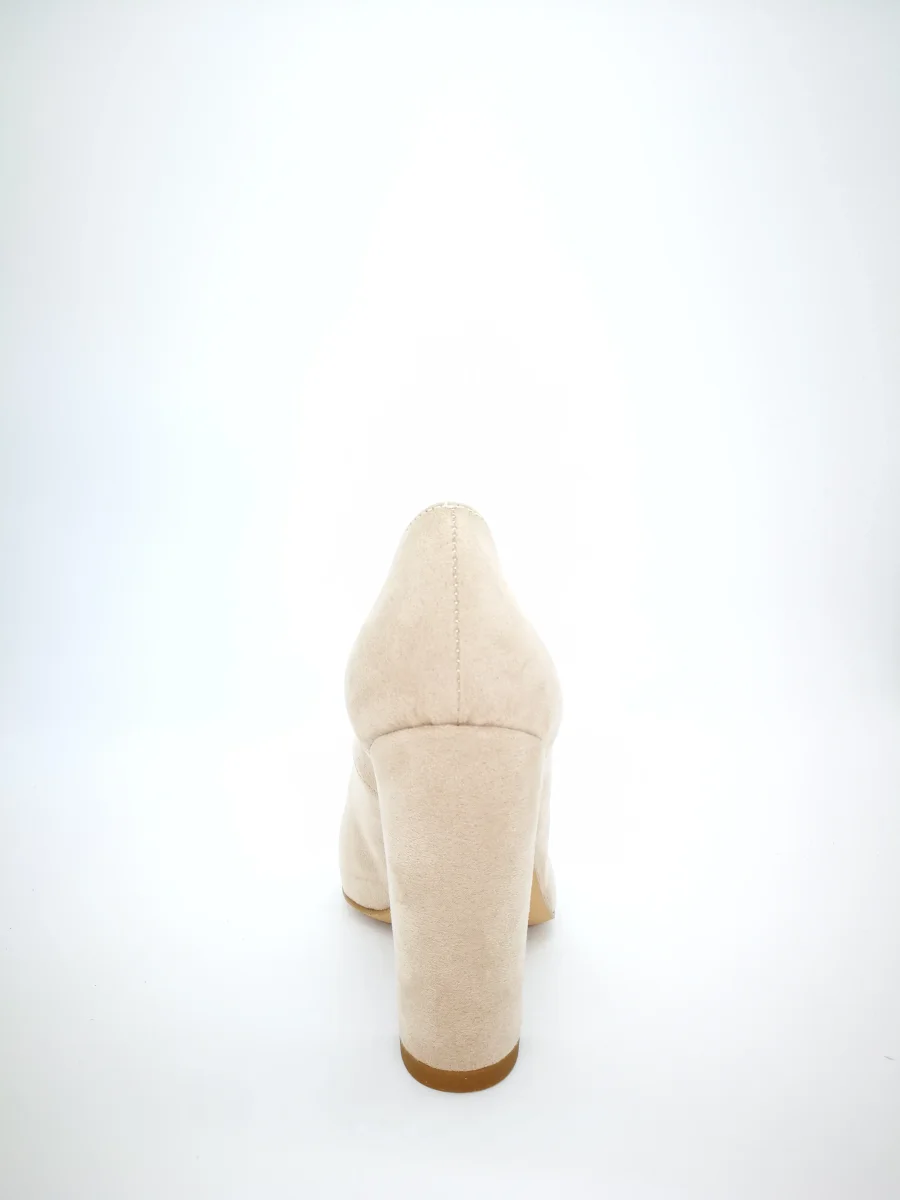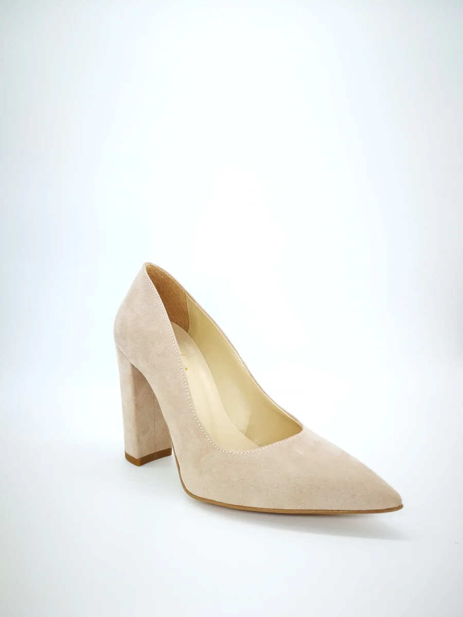 Decolleté tacco 90 largo, produzione artigianale 100% Made in Italy. Interno in vera pelle, camoscio