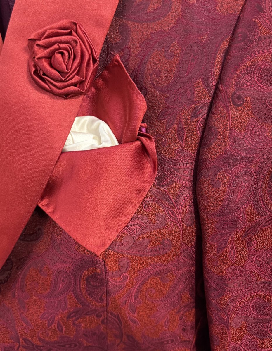 Fazzoletto da sposo cerimonia Cleofe Finati in color rosso e bianco avorio, accessorio elegante realizzato in seta 100% in perfetto abbinamento con l’abito della sposa.