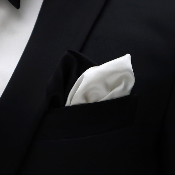 Fazzoletto bianco in seta per abito da uomo SMOKING cerimonia classica da indossare esclusivamente nelle cerimonie serali con invito “cravatta nera”.