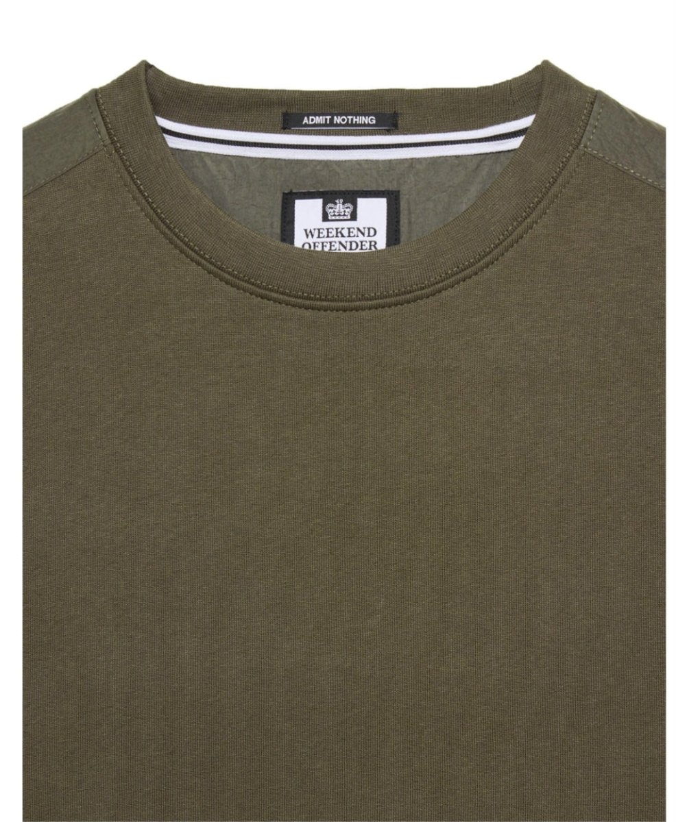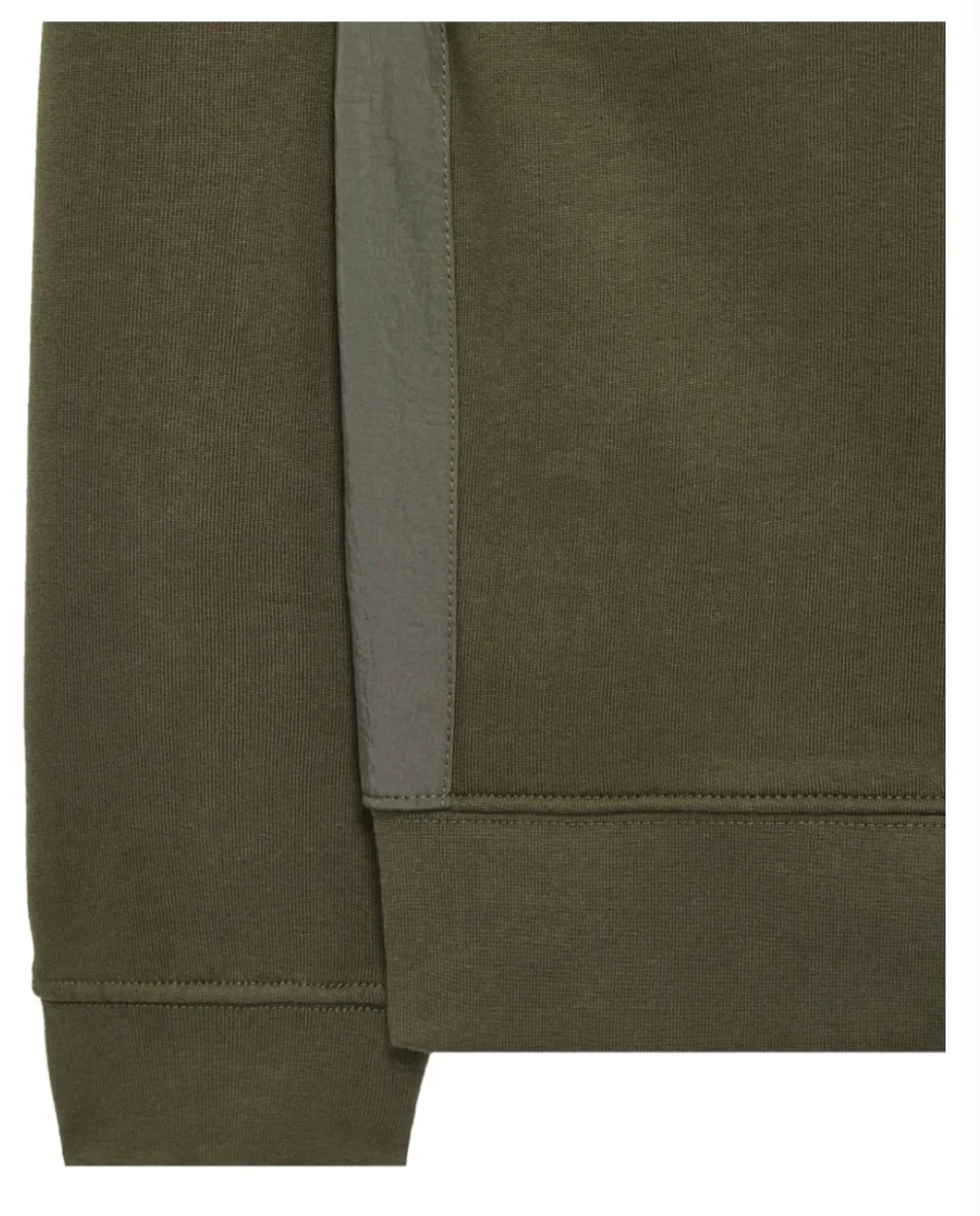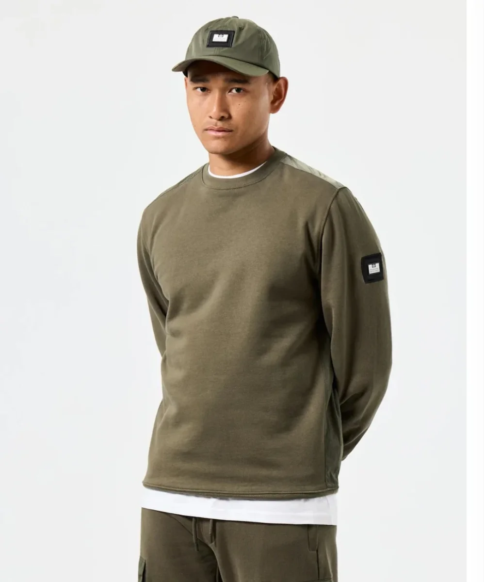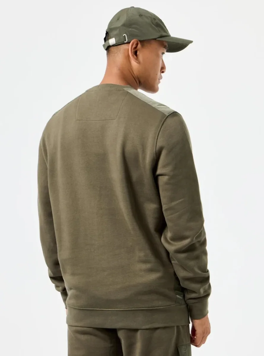 Felpa girocollo con sovrapposizione paracadute realizzata in pile brushback 100% cotone da 370 g/m² con struttura in filato ritorto per creare una sensazione sostanziale sulla superficie esterna e una sensazione morbida e soffice sul retro.