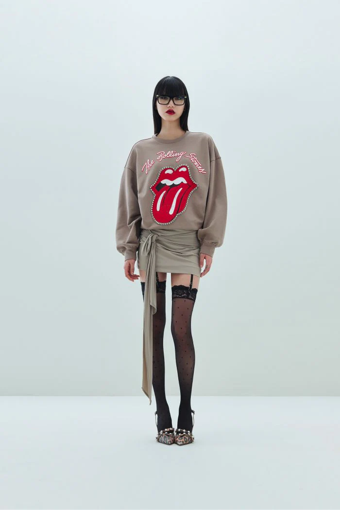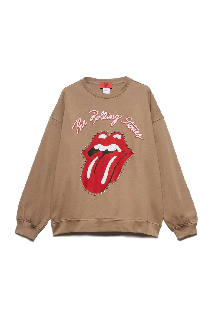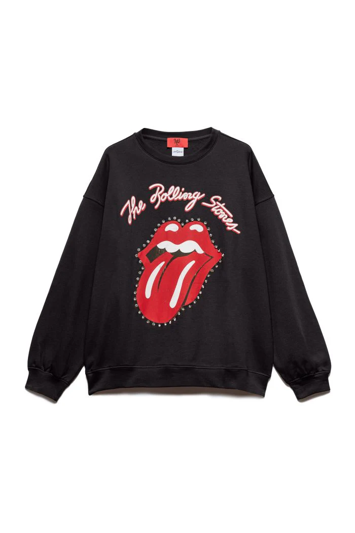 UN OMAGGIO AI ROLLING STONES, BAND ICONA DEL ROCK E SIMBOLO DI AUDACIA STILISTICA. QUESTA FELPA PRESENTA IL MAXI LOGO SUL DAVANTI RIFINITO CON STRASS LUMINOSI. IL LETTERING ANIYE BY SUL RETRO È LA FIRMA DISTINTIVA DEL BRAND.