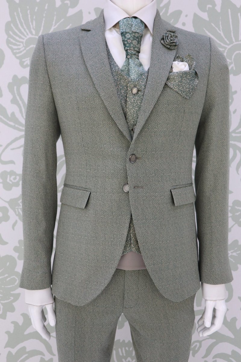 Giacca da cerimonia sposo color verde salvia con micro-trama Albert Camus