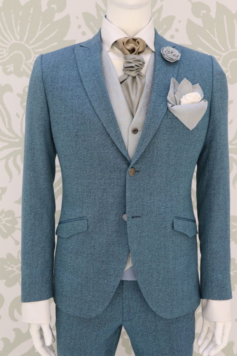 Un abito uomo verde e blu per uno sposo e non sposo “fashion”.