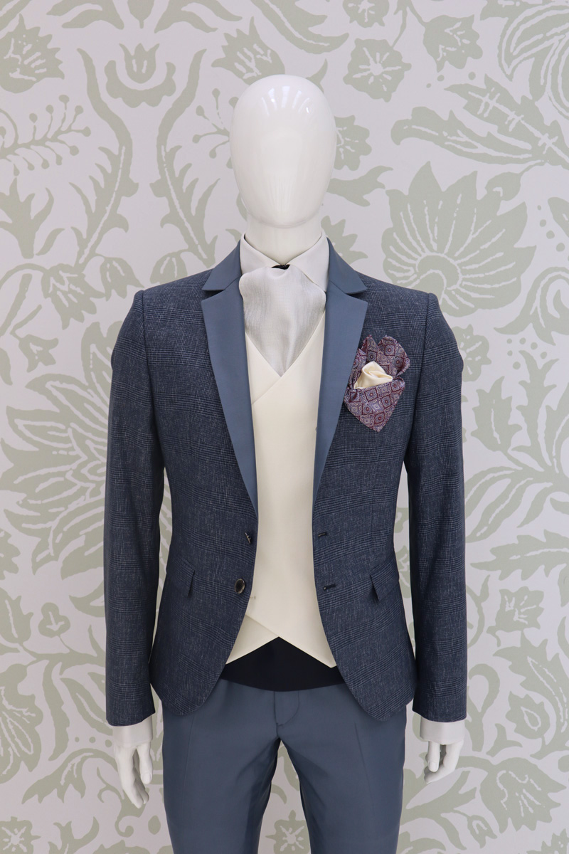 Giacca abito da sposo blu notte e azzurro polvere.