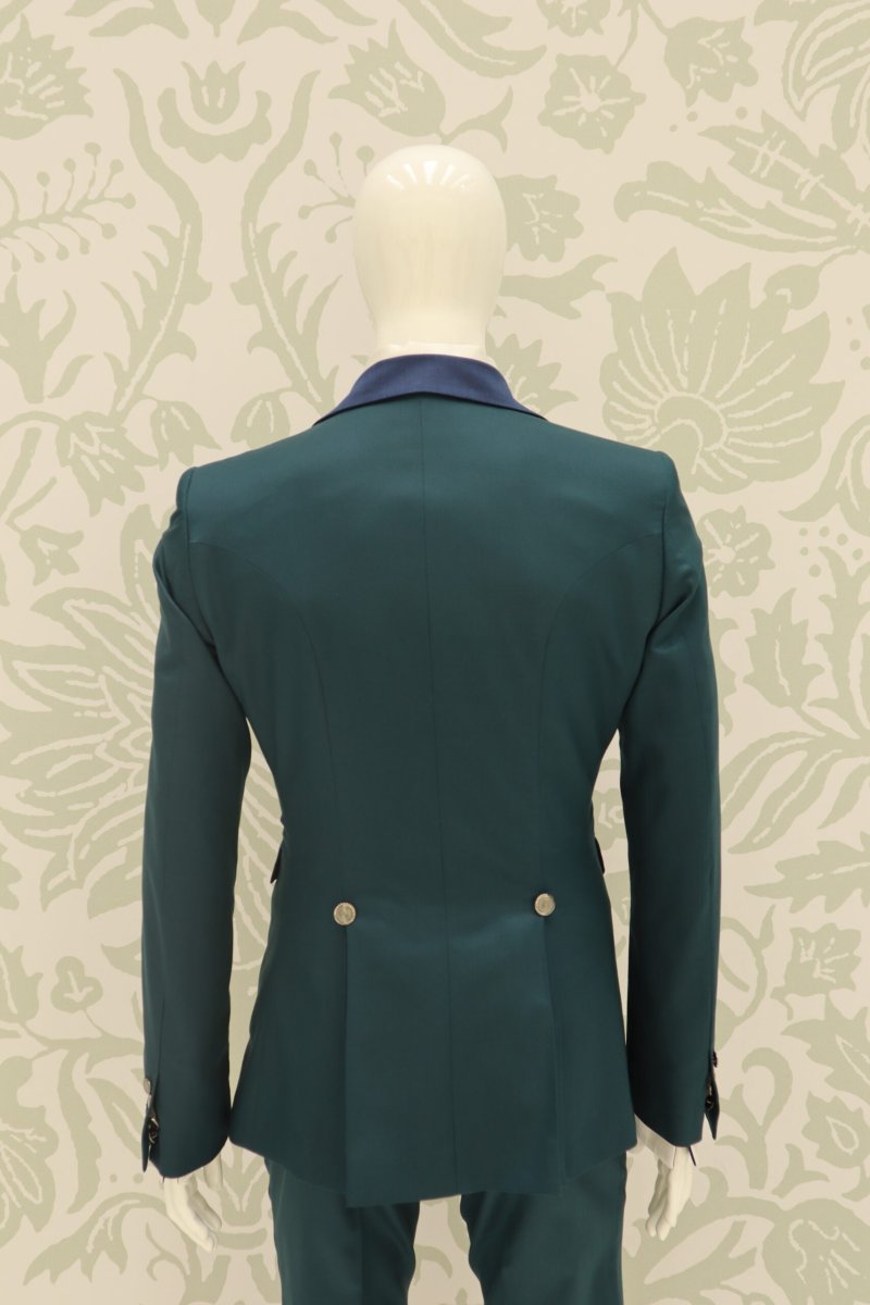 Giacca abito da sposo blu in raso di seta lana. Linea fashion d’Avanguardia dandy, da poter reinventare successivamente anche su un paio di jeans.