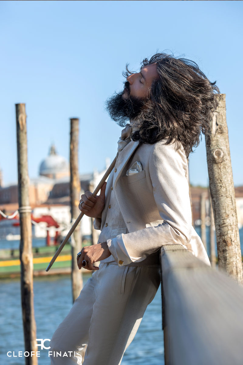 Giacca abito da uomo lusso glamour crema panna e bianco monopetto uomo linea fashion boho chic da poter indossare in qualunque occasione realizzata in broccato di seta made in Italy 100%. Reinterpretala anche su un jeans.