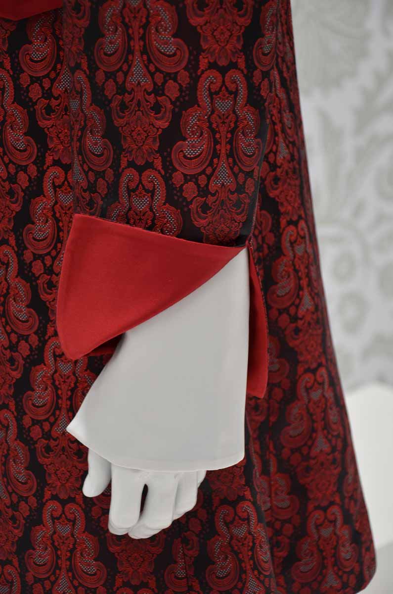 • Corpo marsina: broccato solcato da un disegno rosso rubino su sfondi nero inchiostro