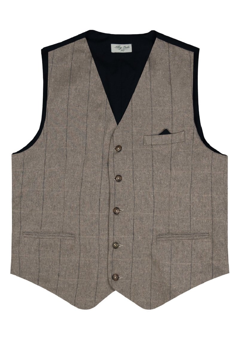 Gilet in cotone misto lana con trama Check color desert e retro a contrasto.