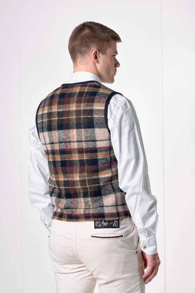 Il Gilet monopetto è caratterizzato da un design essenziale ma ricercato ed è perfetto per completare un look casual elegante. Realizzato in tessuto morbido e confortevole, presenta un’abbottonatura frontale con bottoni a contrasto e un retro in tessuto V2 coordinato, che lo rende unico nel suo genere.