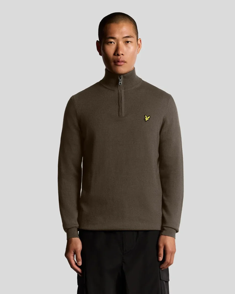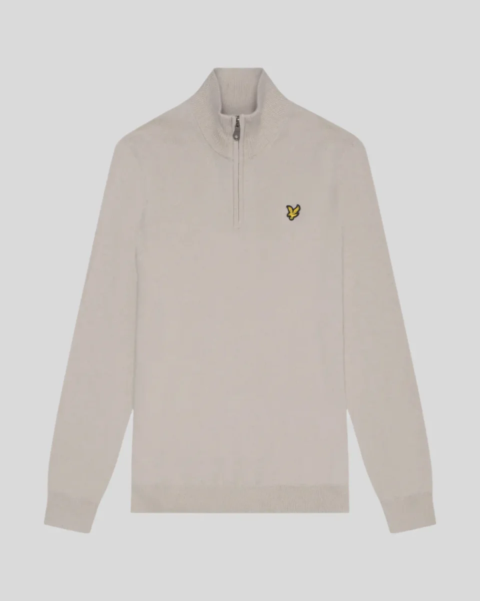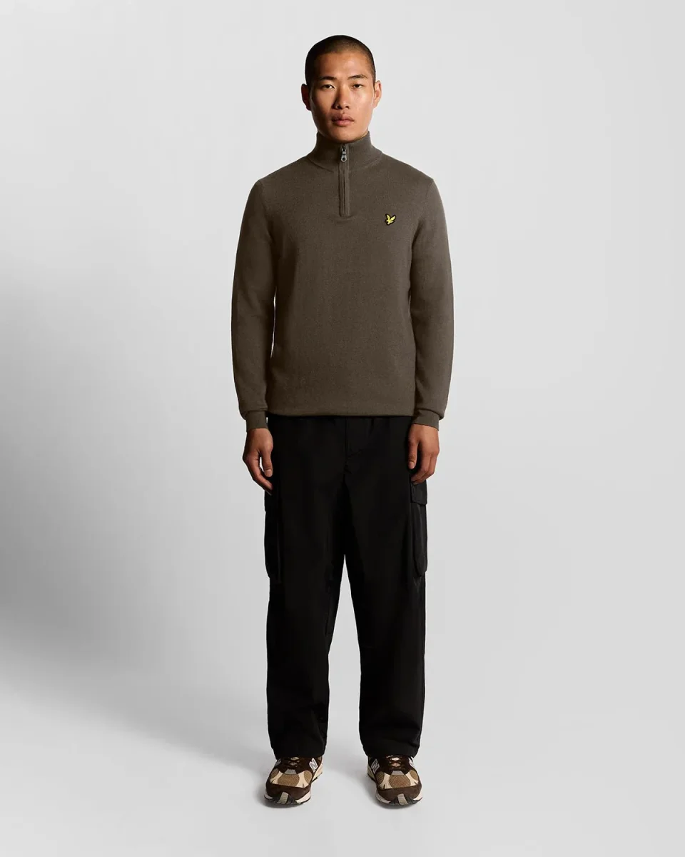 Questo maglione in cotone merino con zip a 1/4 offre una vestibilità regolare, calore traspirante e un design versatile, ideale per le mezze stagioni.