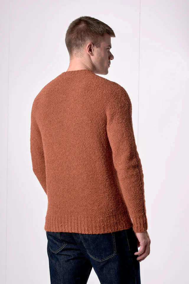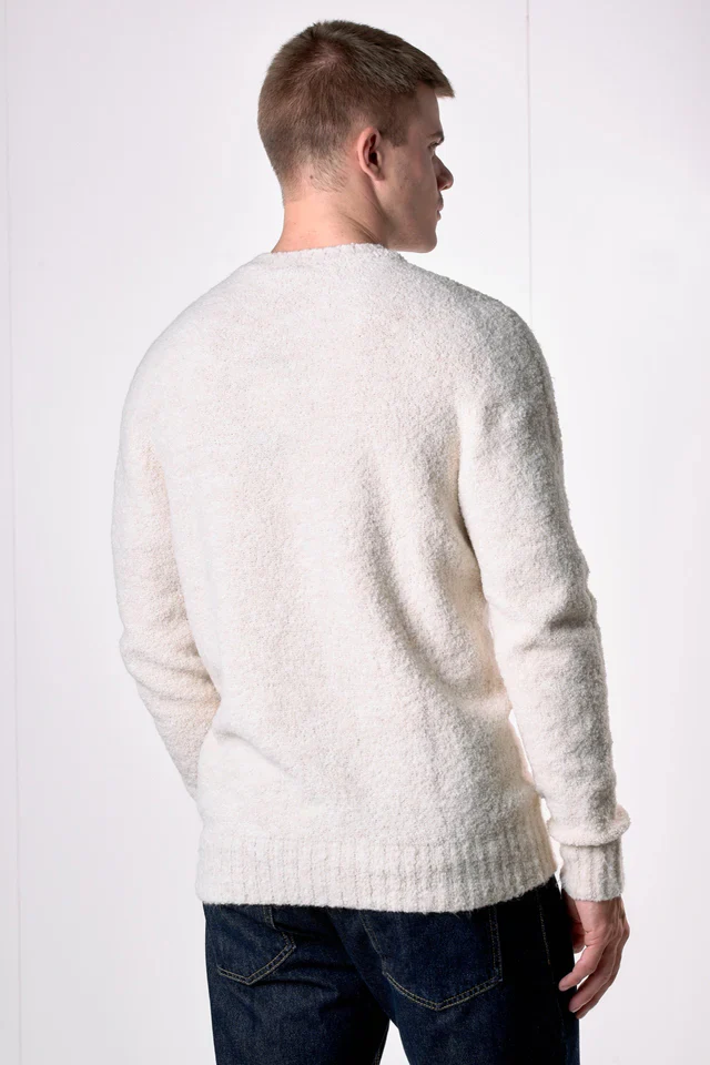 Il maglione girocollo in filato extra-soft è pensato per diventare una seconda pelle, un abbraccio leggero che accompagna ogni movimento. La sua superficie soffice invita al contatto, regalando quella sensazione di calore avvolgente che solo i capi più autentici sanno trasmettere.