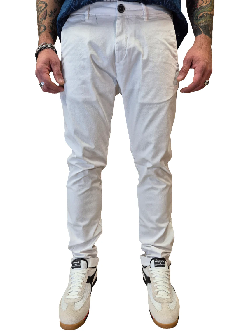 Pantalone uomo Mark, in tessuto gabardine stretch, tasche laterali america, tashe posteriori a toppa con bottoni, fondo con risvolto, fit regolare.