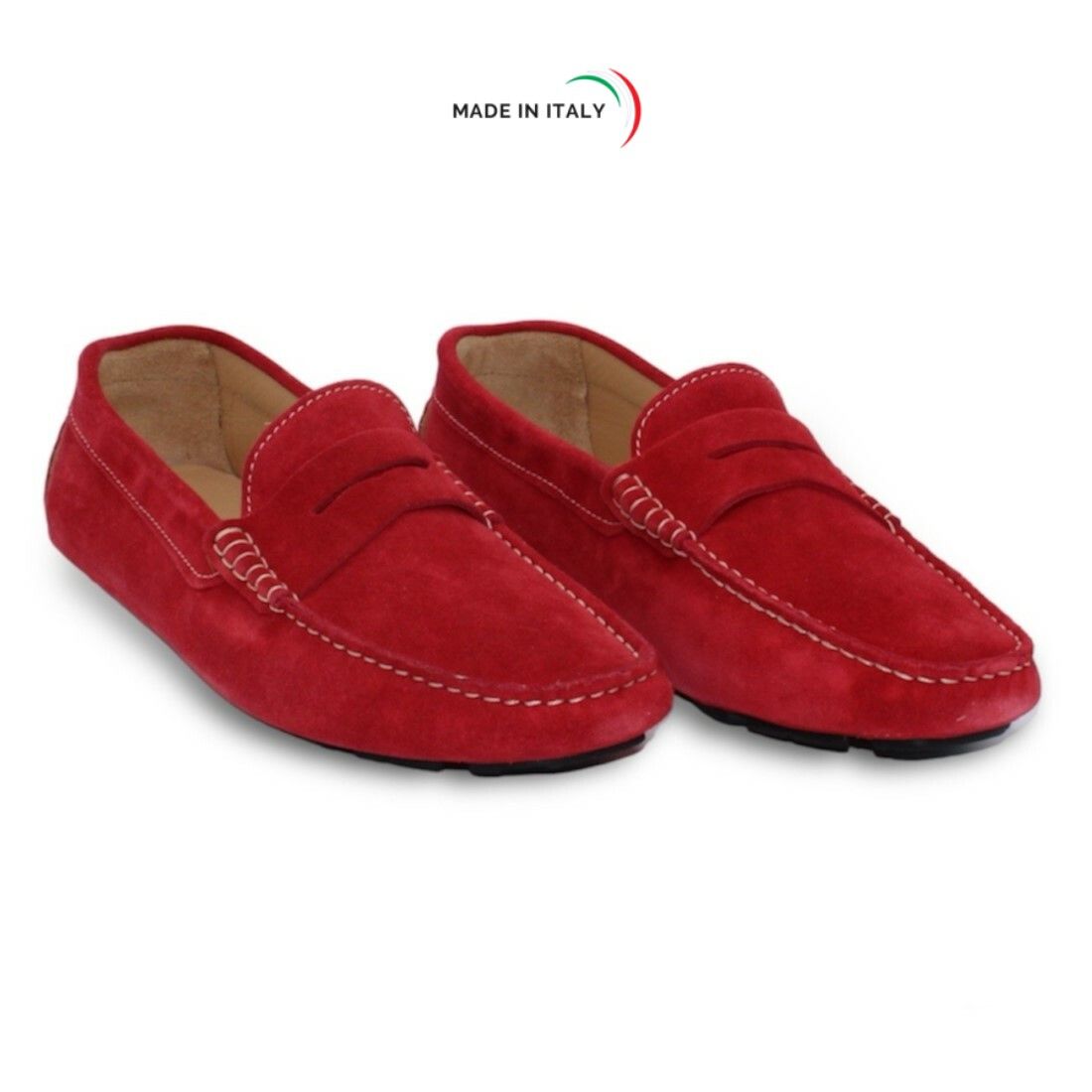 Mocassino in camoscio con passante, cucito a mano, flessibile e leggero